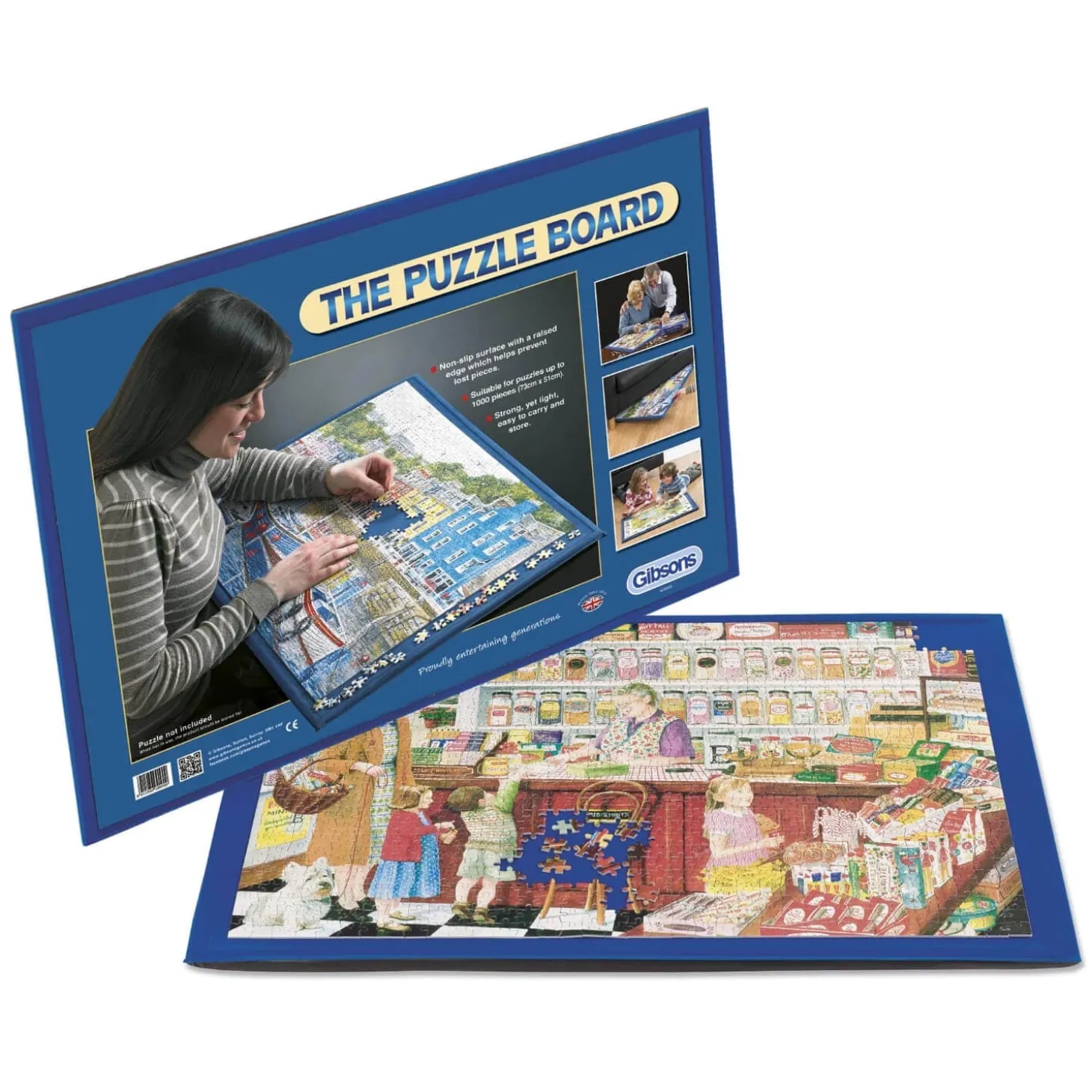 Gibsons presents their Puzzle Board, perfect for protecting your jigsaw puzzle and providing a stable work surface as you piece together your masterpiece. Designed for puzzles of up to 1000 pieces, this lightweight yet sturdy board features a non-slip surface with a raised edge to keep pieces secure. Easy to carry and store, it’s an essential accessory for every puzzle enthusiast!