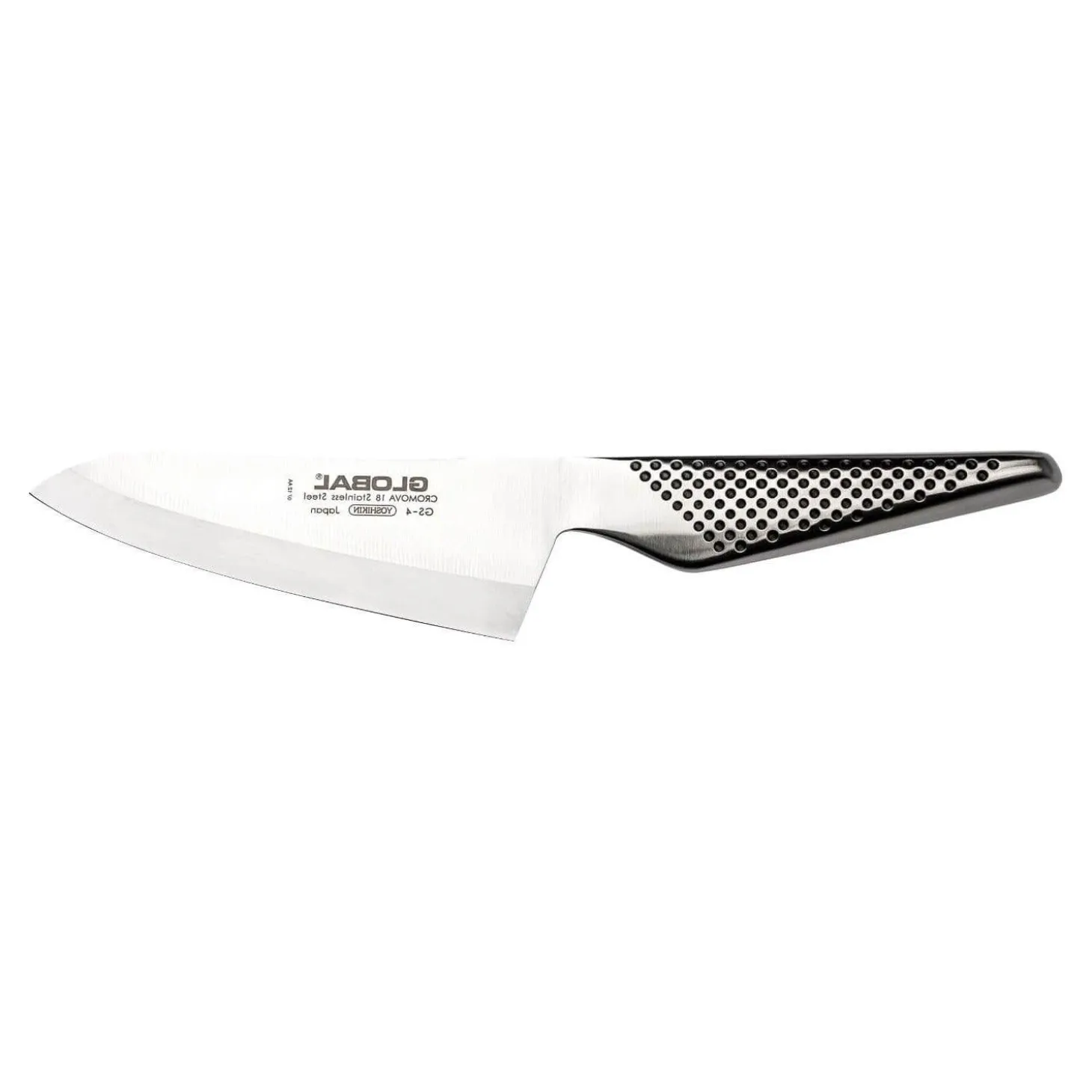 Global’s GS-Series GS-4 12cm oriental Deba knife provides excellent cutting performance and longevity through high-quality manufacturing processes and design. Part of the award-winning G-Series range, the blade of the knife has been created using CROMOVA18 stainless steel that is sharpened to a 15-degree angle proving unmatched cutting performance. Designed by Komin Yamada.