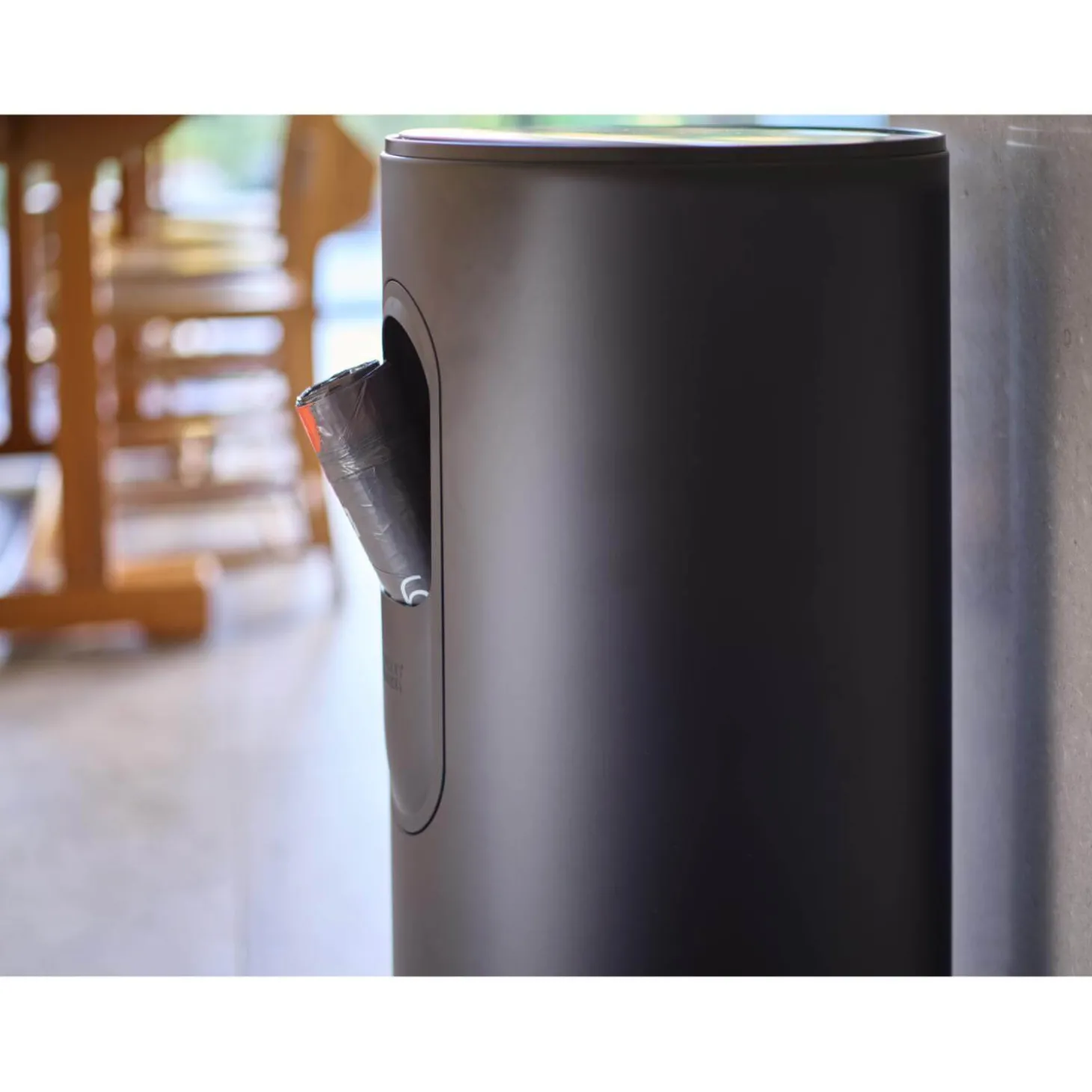 Joseph Joseph presents the Arc 30 Litre Easy-Push Pedal Bin in Carbon Black. This elegantly designed circular bin not only adds a touch of modern sophistication to your space but also incorporates a large, convenient pedal that allows for effortless opening without taking up extra floor space. The unique design includes a thoughtfully integrated storage compartment at the rear, perfect for keeping bin liners easily accessible and neatly organised. Crafted from durable carbon steel, this bin combines both functionality and style, making it an essential addition to any home.