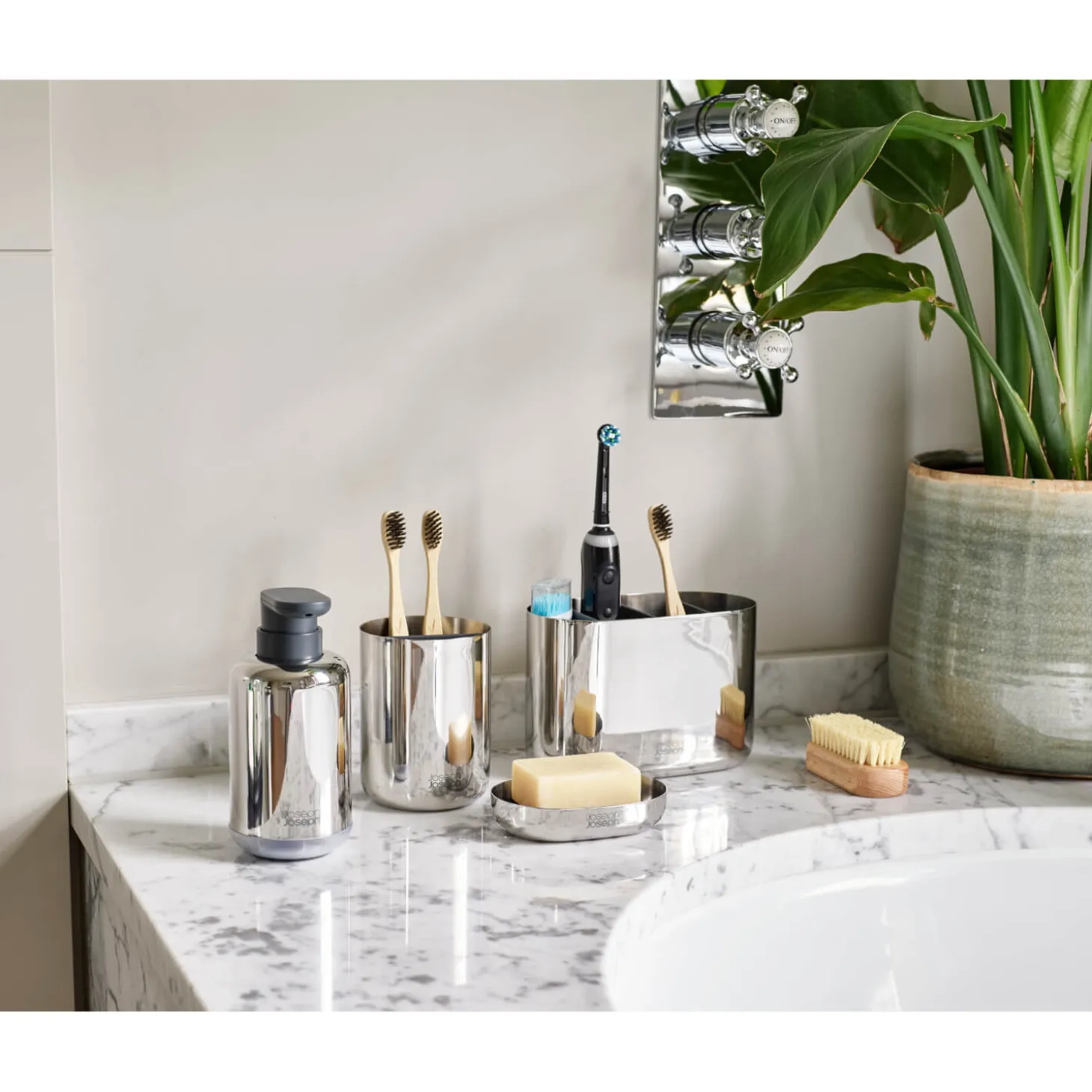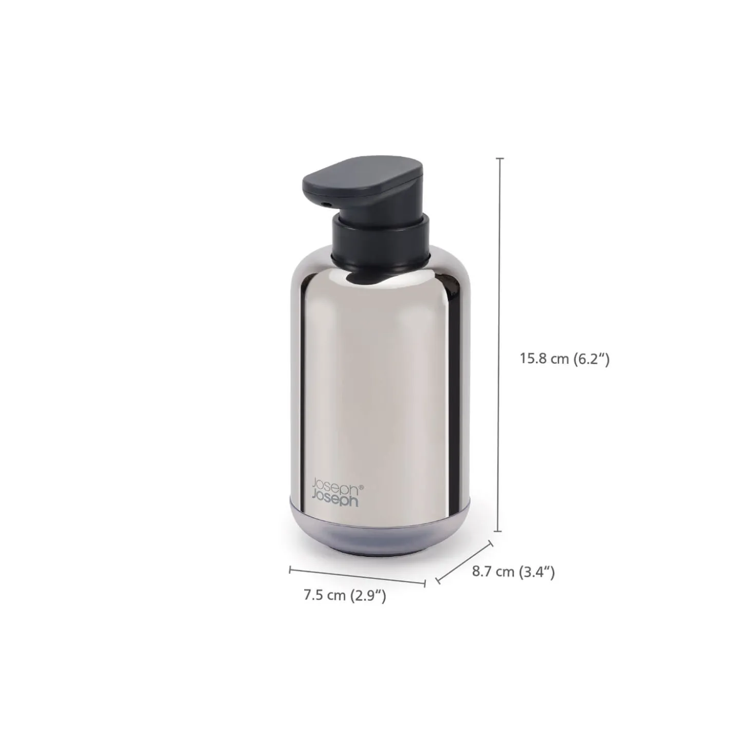 Joseph Joseph presents the EasyStore Luxe Soap Pump in Stainless Steel, featuring a transparent fill-level window. The base is non-slip for stability with an easy-push pump head for ease of use. A generous capacity of 300ml, this soap dispenser is both ideal for either bathrooms or kitchens.