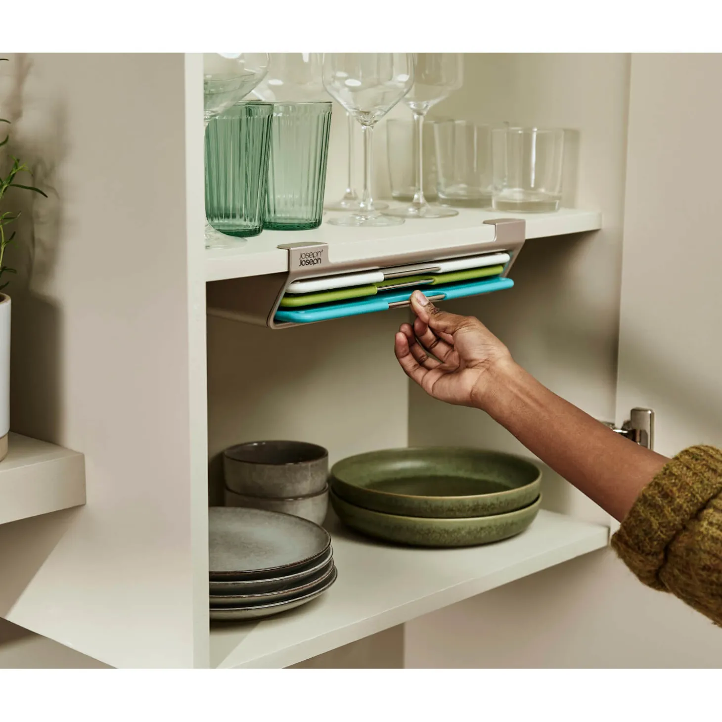 Joseph Joseph presents their Editions Folio Slim Chopping Board Set with multi-coloured boards. Featuring three double-sided colour-coded chopping boards, an ideal worktop addition to prevent cross-contamination when preparing different ingredients in the kitchen. With a slimline design for convenient storage and a tiered design for easy selection with each board having stainless steel handles. Each board is designed with safety and convenience in mind, such as a textured surface on each side that is knife-friendly and has non-slip feet which allow for secure use whilst chopping and mincing ingredients.Â
