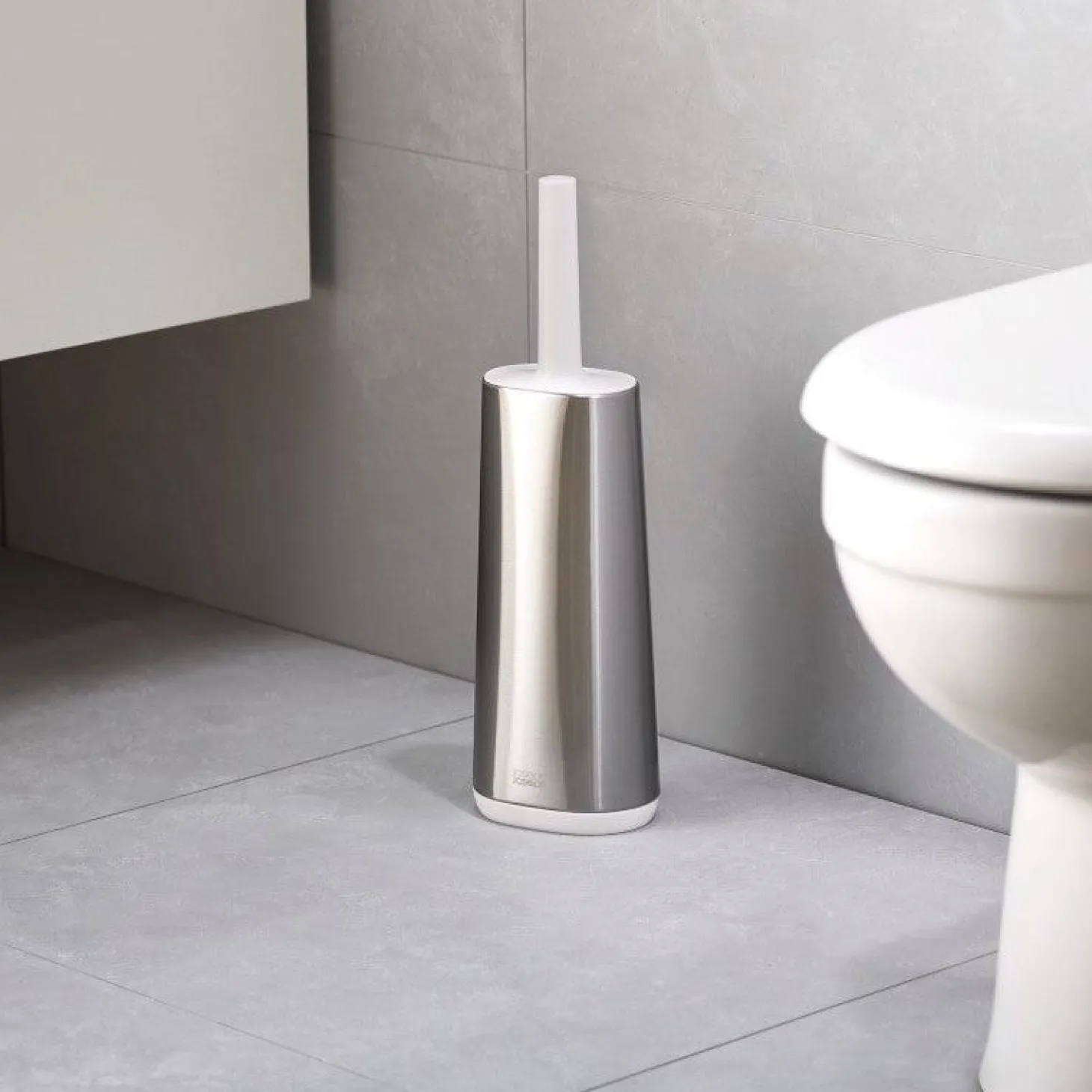 The Flex™ Toilet Brush by Joseph Joseph provides unmatched hygiene and practicality through its unique ‘D’ shape silicone brush head design that eliminates the key problems of conventional toilet brushes including worn bristles, trapped dirt and liquid. The Flex™ toilet brush is able to reach all areas and boasts anti-clog and anti-drip bristles for maximum hygiene.