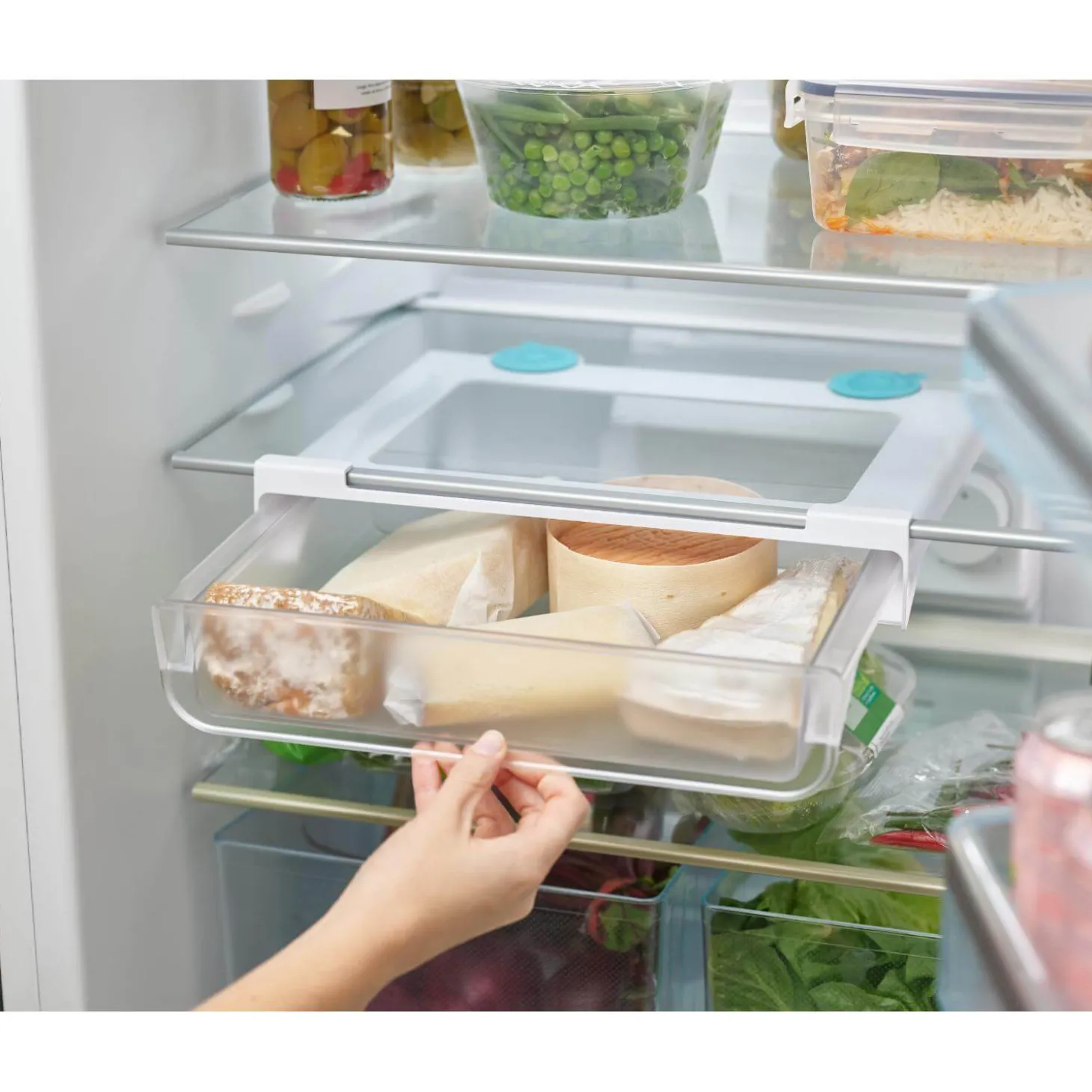 Joseph Joseph presents the Under Shelf Storage Drawer as part of their FridgeStore range. This drawer hooks under an existing shelf to create more fridge storage for your food. It’s a great fridge organizer!