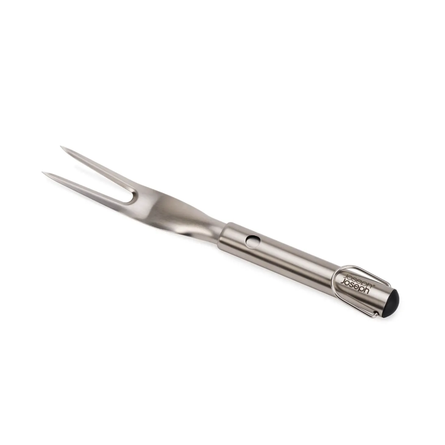 Joseph Joseph presents the BBQ Fork from their GrillOut™ range. This fork features a retractable head for easy cleaning and a hanging hook for compact storage. Its sharp prongs allow for easy turning and pierce food effortlessly. This tool is perfect for enthusiastic outdoor chefs.