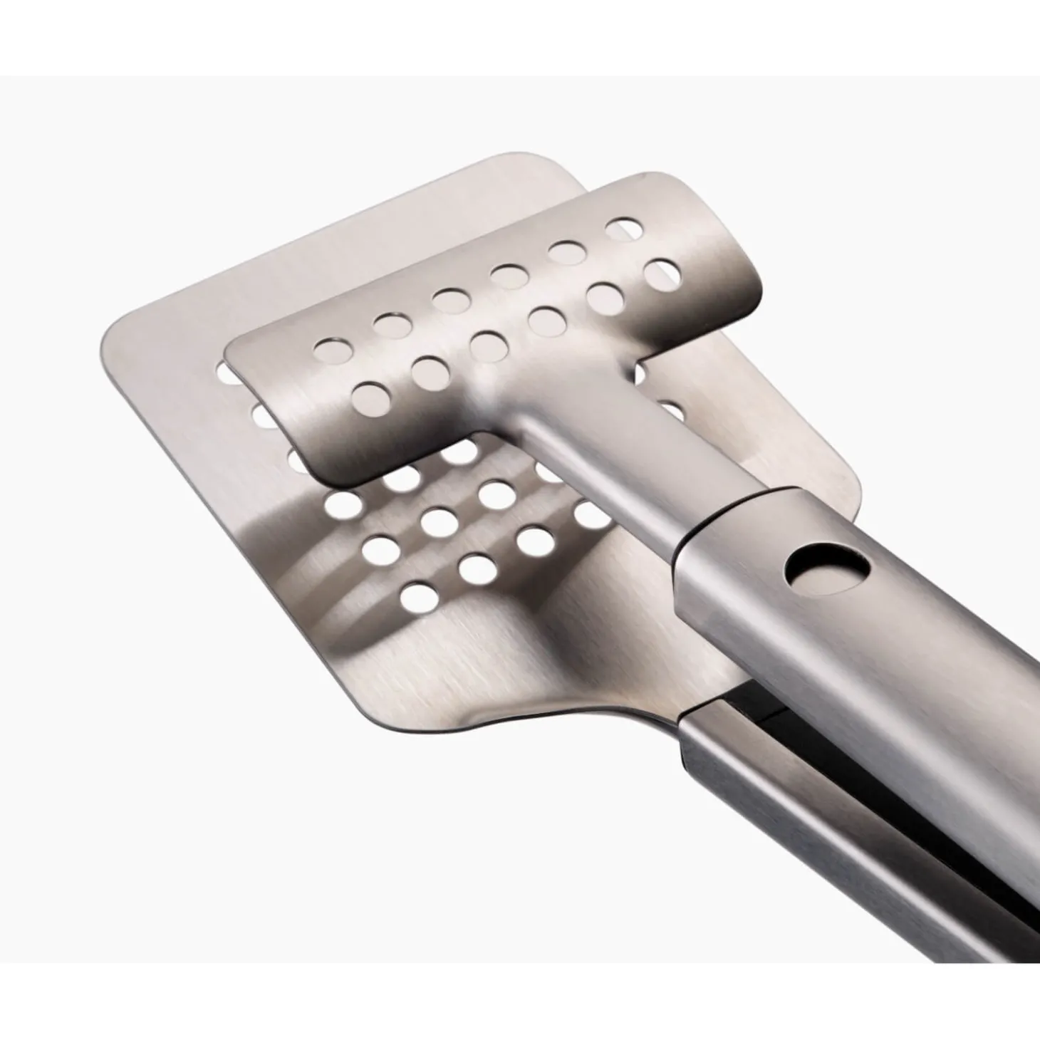 Joseph Joseph presents the BBQ Turner Tongs from their GrillOut™ range. This innovative 2-in-1 design combines tongs and a turner, making it easy to grip, lift, and turn food. These turner tongs are perfect for versatile BBQ grilling and feature drainage slots as well as a removable head for easy cleaning.