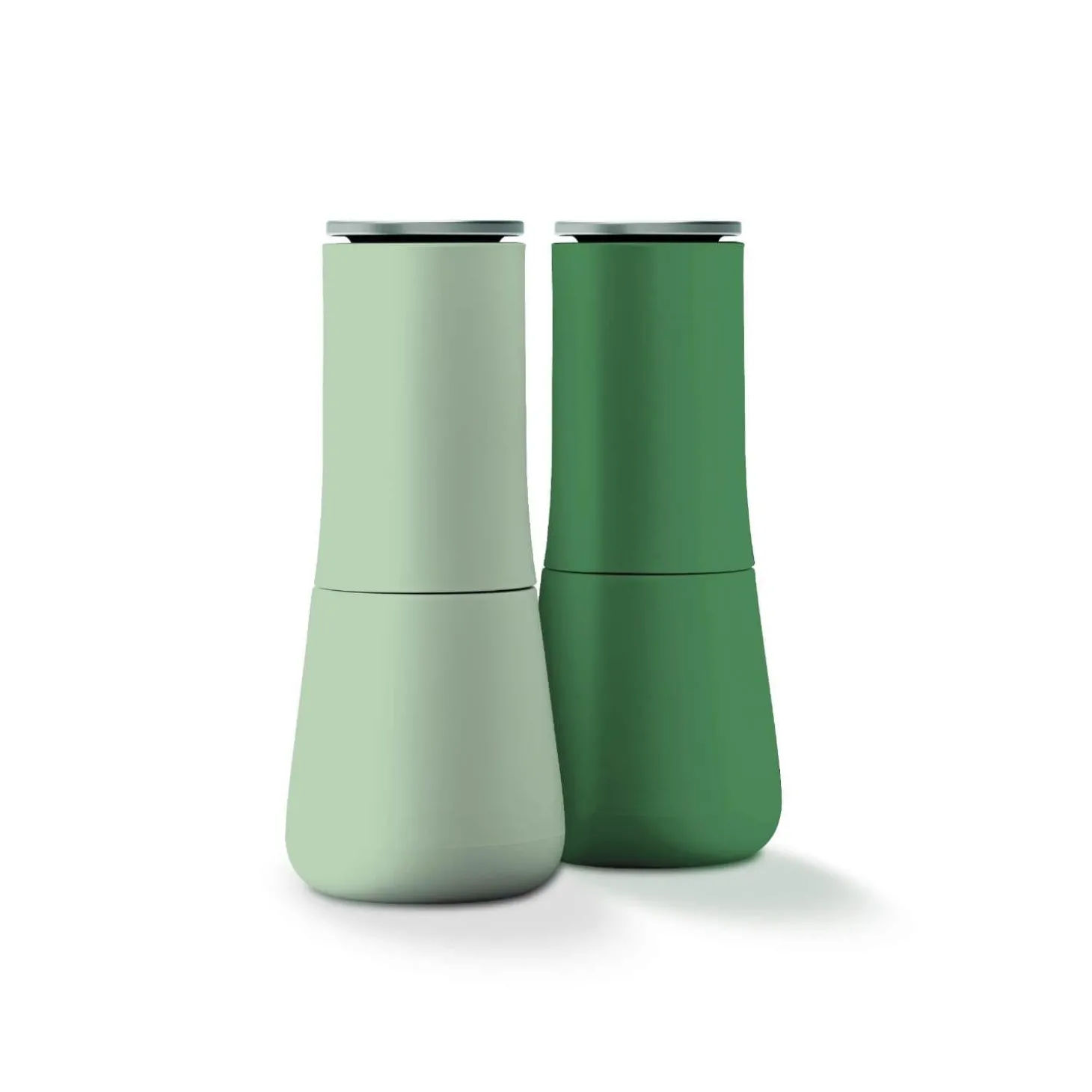 Add more flavour to your favourite dishes with the Milltop Editions salt and pepper mill set in sage green by Joseph Joseph. Featuring an inverted design to keep the tabletop mess-free and a simple twist base to grind ceramic mechanism, this set is ideal to place on the tabletop for all your guests to use. Designed to be easy to refill and also adjust from a coarse to a fine grain, each salt and pepper mill in this collection will suit everyone’s flavour needs.