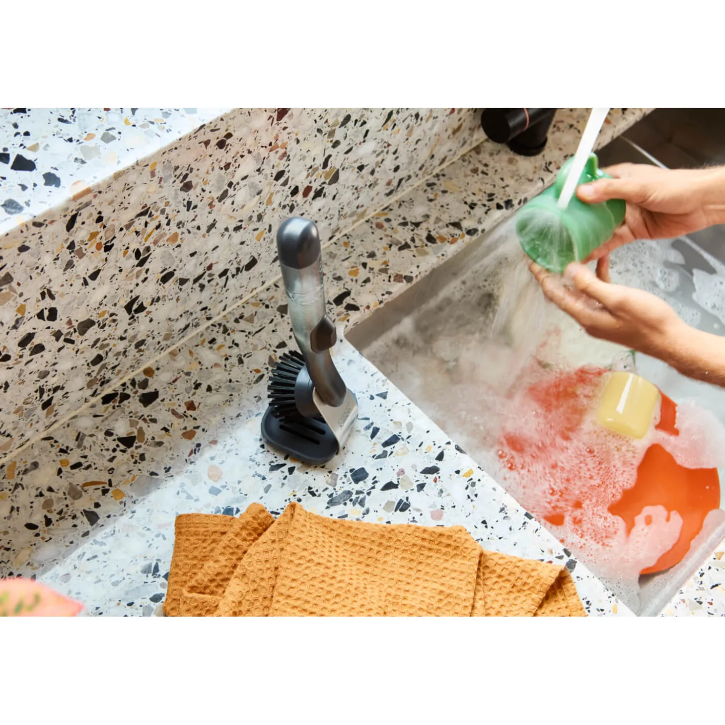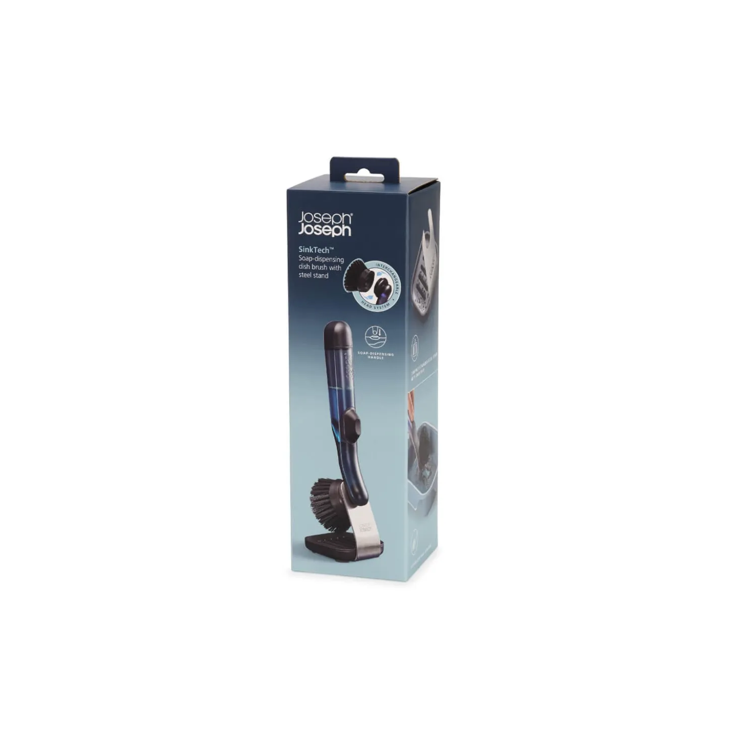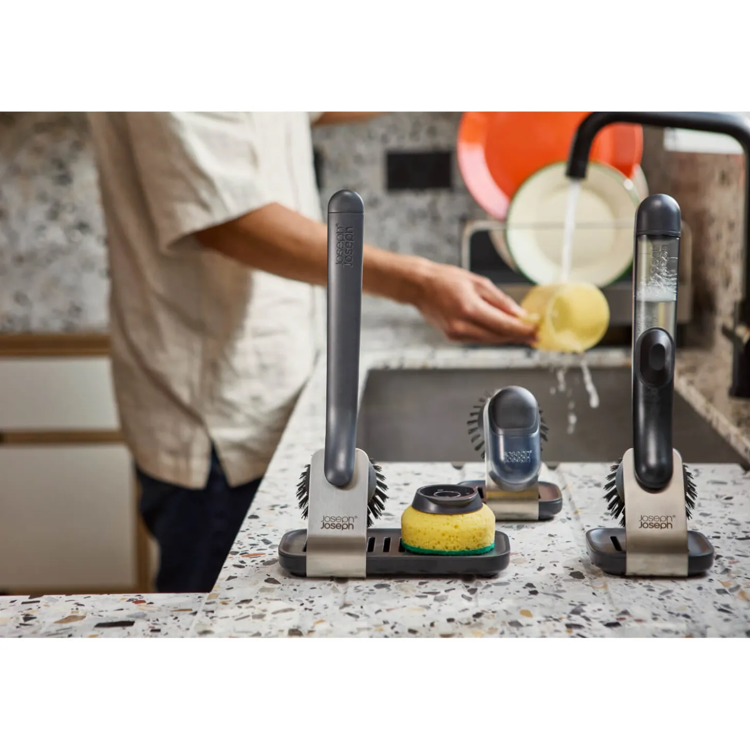 Joseph Joseph presents the SinkTech Soap Dispensing Washing Up Brush with Steel Stand. This excellent brush features durable bristles and includes a refillable dispenser for your washing-up liquid. The steel stand comes with a drip tray and is designed to sit neatly next to your sink, making it ready for your next chore.