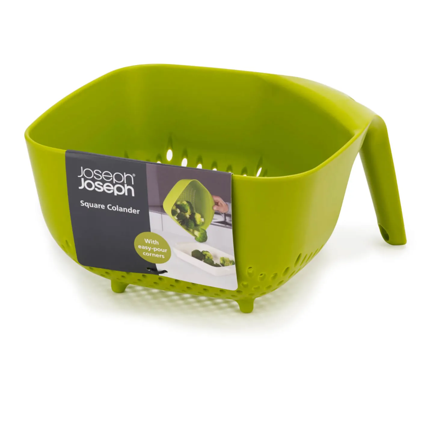 Joseph Joseph presents the Square Colander in Green, strong, and sturdy with a non-slip base, this colander will sit securely on your worktop or in your sink as you drain pasta, noodles, vegetables or fruit. A perfect colander for use in all cooks kitchens.
