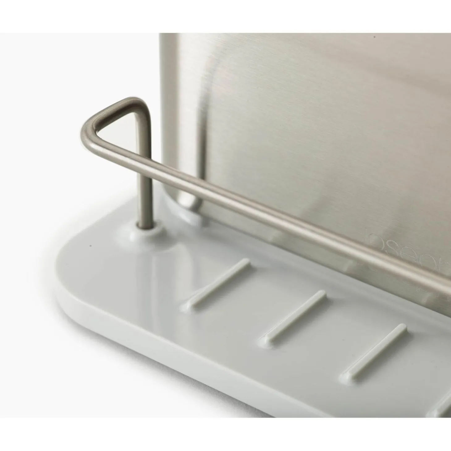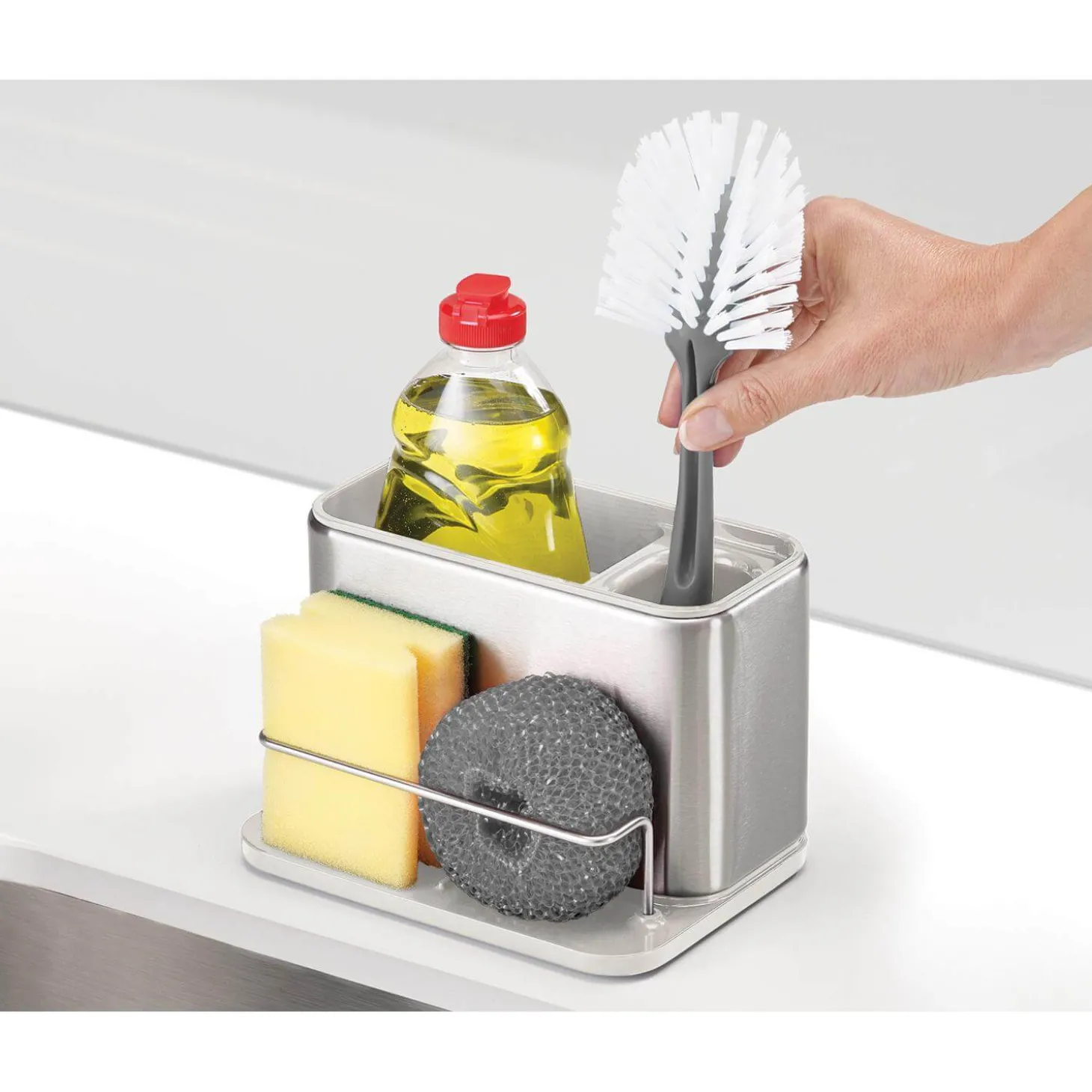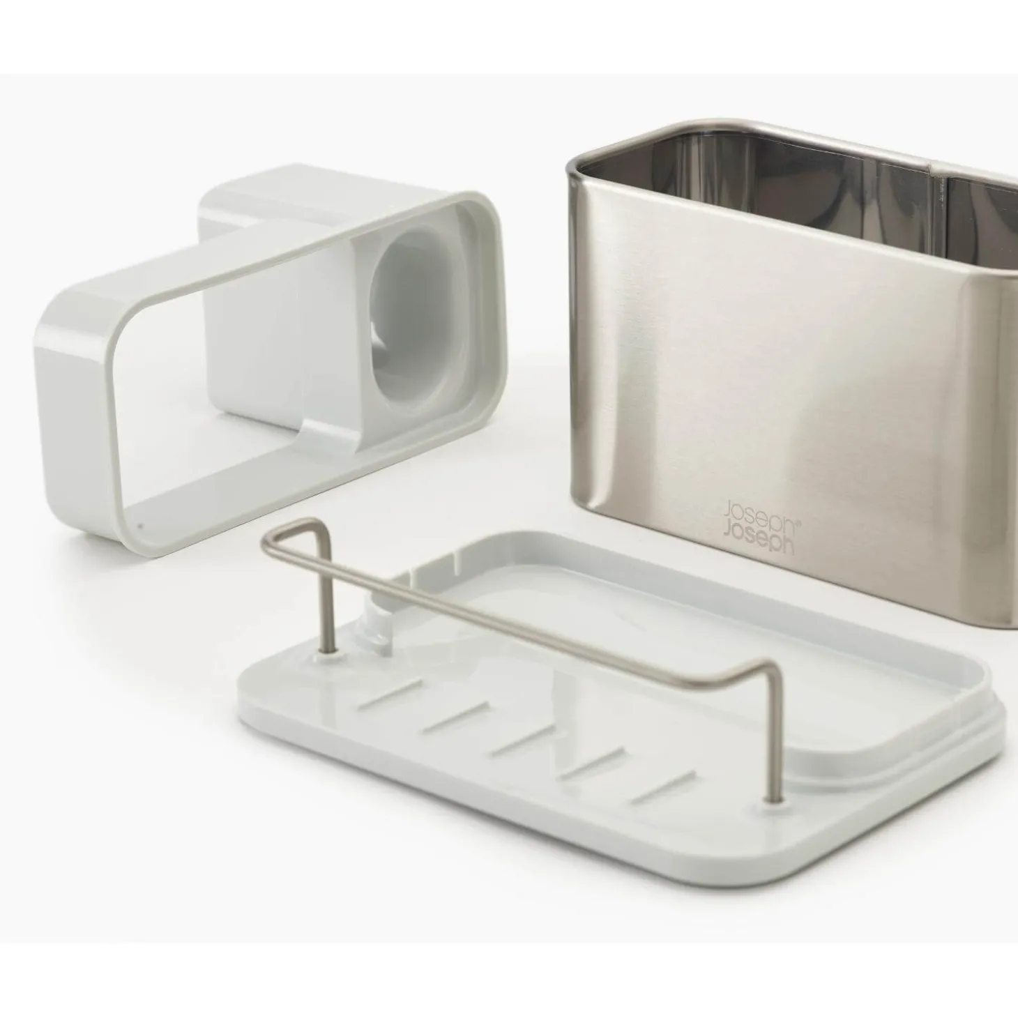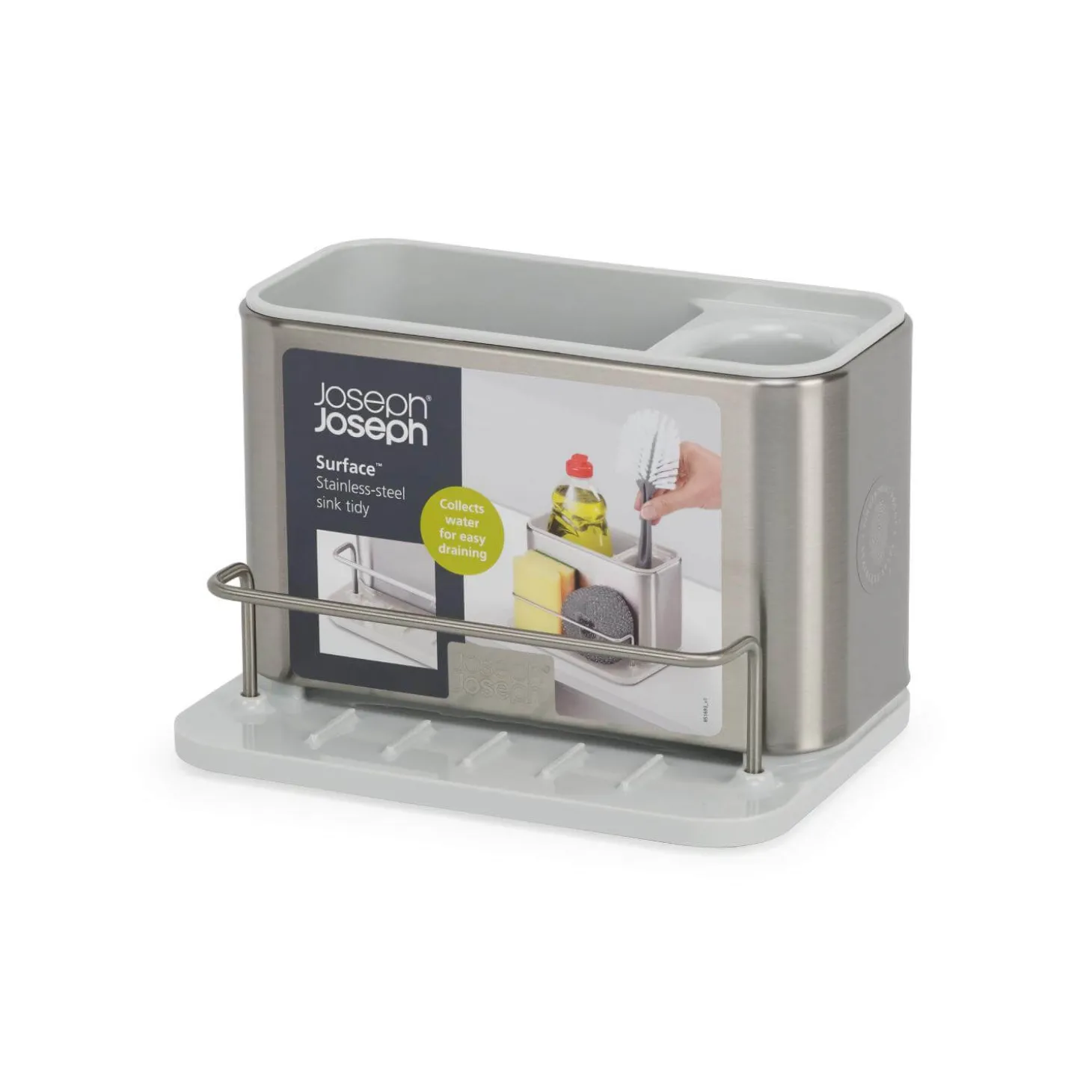 Joseph Joseph presents the Surface Stainless Sink Tidy in Stone, designed to keep your washing-up liquids, brushes, and sponges organised in a stylish and clutter-free manner, keeping your sink area neat and tidy.