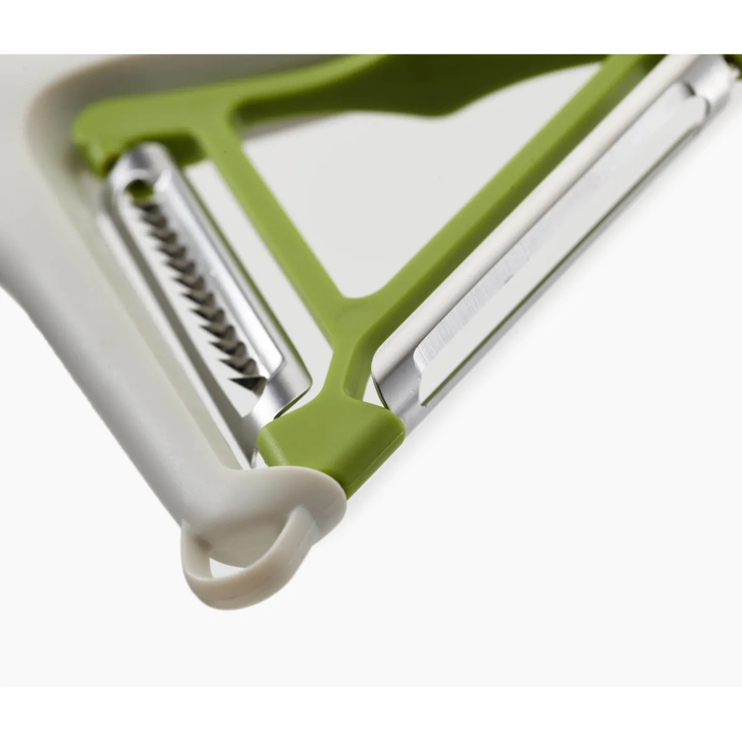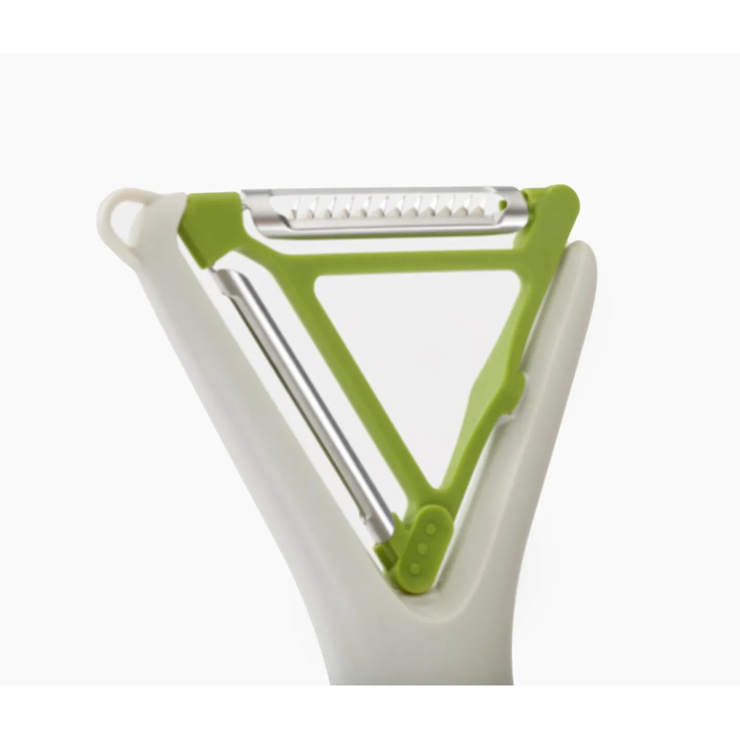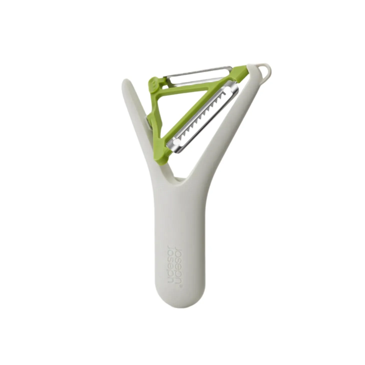 Joseph Joseph presents their Switch™ 2-in-1 Multi-Blade Peeler, a versatile tool with interchangeable stainless steel blades for standard peeling and julienning. Its ergonomic Y-shaped design ensures a comfortable grip, while the easy-switch mechanism allows for seamless blade changes. With a built-in potato eye remover, it’s an essential addition to any busy kitchen.