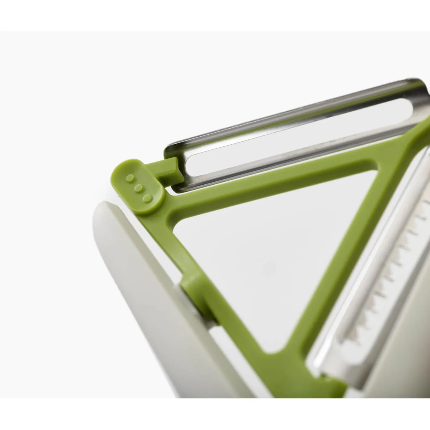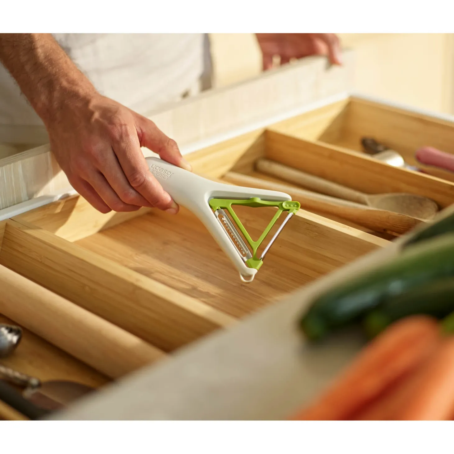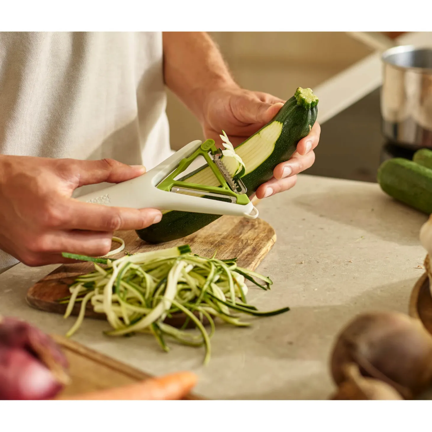 Joseph Joseph presents their Switch™ 2-in-1 Multi-Blade Peeler, a versatile tool with interchangeable stainless steel blades for standard peeling and julienning. Its ergonomic Y-shaped design ensures a comfortable grip, while the easy-switch mechanism allows for seamless blade changes. With a built-in potato eye remover, it’s an essential addition to any busy kitchen.