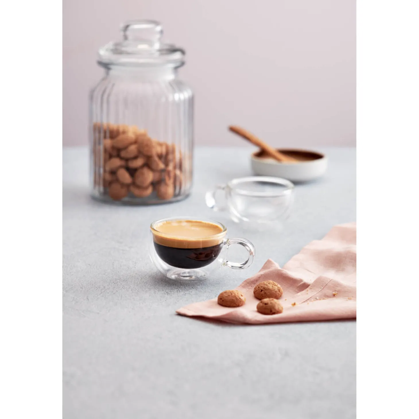 Judge presents the Duo Double Walled Set of 2 75ml Espresso Form Glasses, perfect for all coffee lovers. Create your favourite drink and serve it in these lovely glasses bringing a stylish coffee house look to your home. These beautiful glasses are double-walled creating a thermal air pocket keeping your drink hotter for longer whilst the outside of the glass remains cool to the touch. A great gift idea for all coffee lovers.
