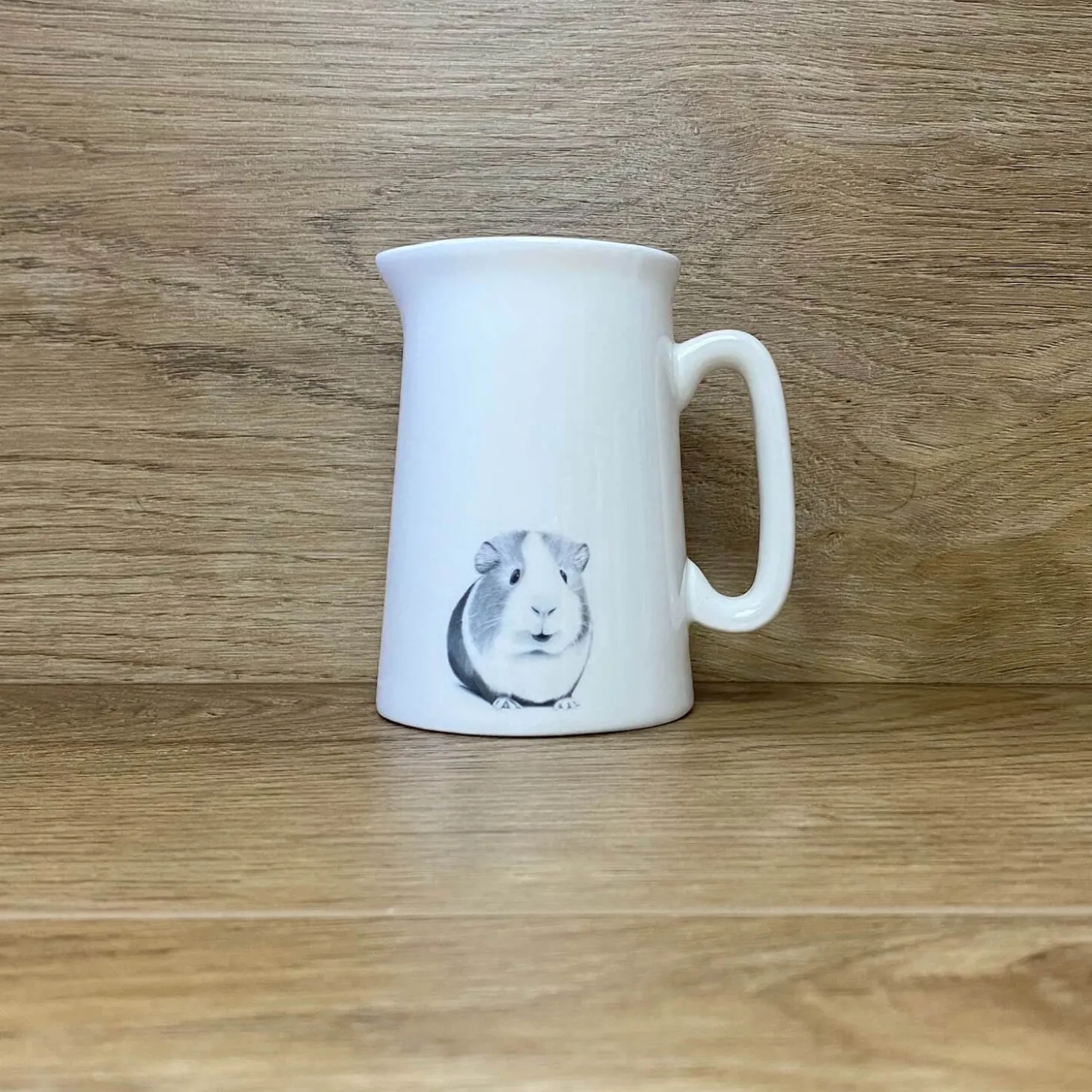 Katherine Sheard presents the Fine China 1/2 Pint Jug in Ginny Guinea Pig design as part of her collection, capturing the essence of each characterful animal in a delightful unique black and white pencil-drawn style. This charming, beautifully crafted jug would make a wonderful addition to any morning breakfast or afternoon tea.