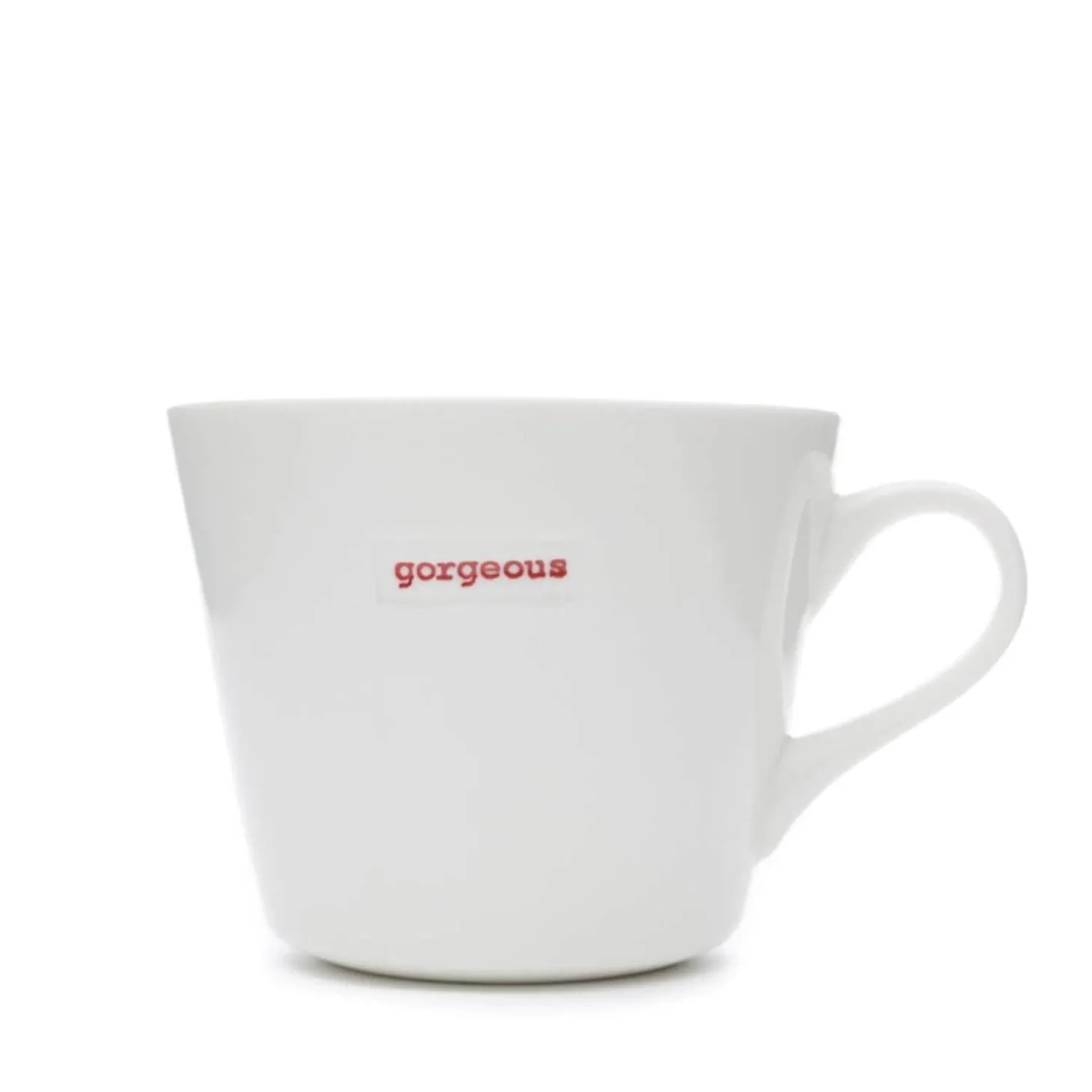 Keith Brymer Jones presents this fun design ‘gorgeous’ bucket mug. Featuring various words to suit everyone! Made from super white porcelain, these mugs will make a great gift or a treat for yourself. A great way to start your day with a hot coffee or tea in your own special fun mug.