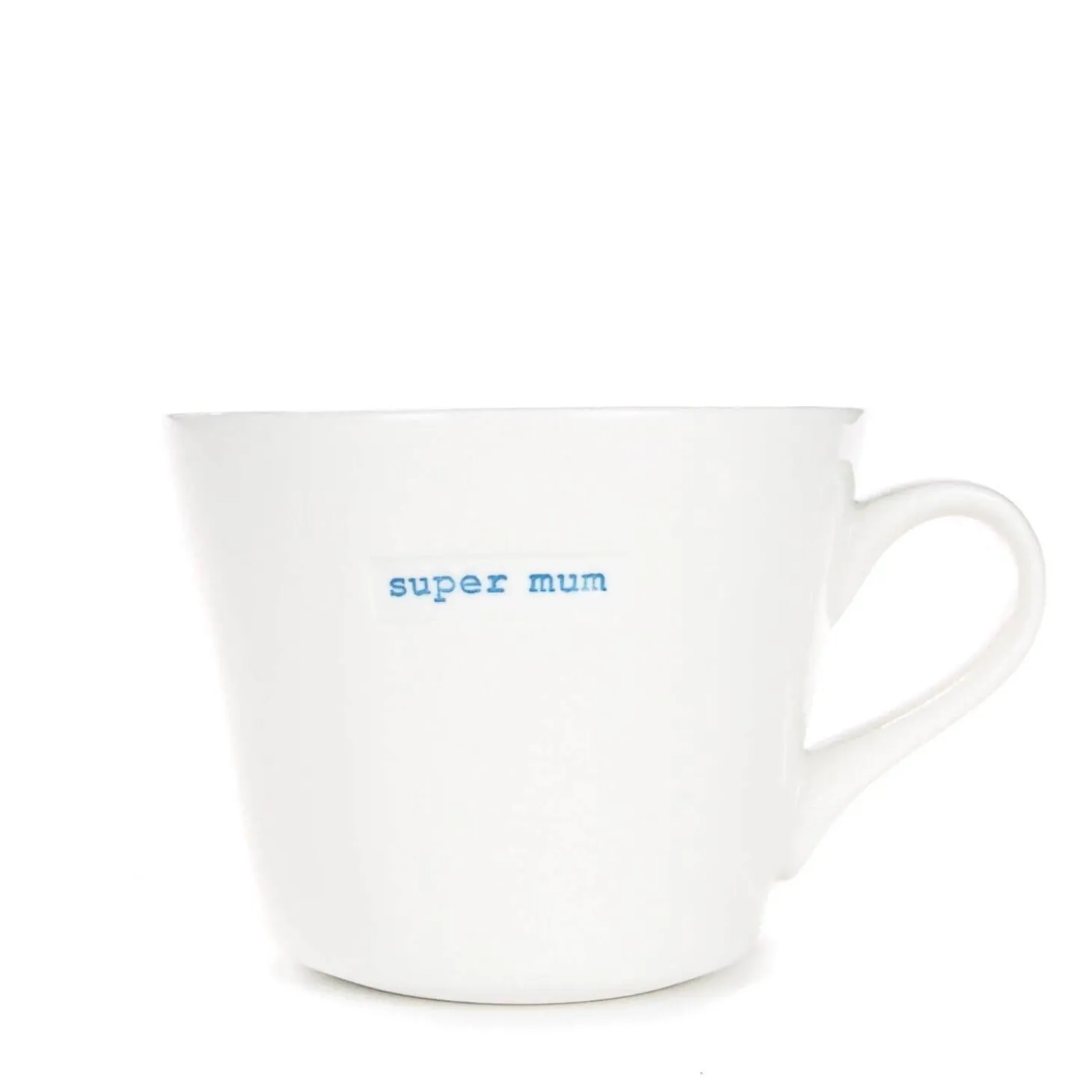 These fun ‘super mum’ design bucket mugs from the Keith Brymer Jones range feature various words to suit everyone! Made from super white porcelain, these mugs will make a great gift or a treat for yourself. A great way to start your day with a hot coffee or tea in your own special fun mug.
