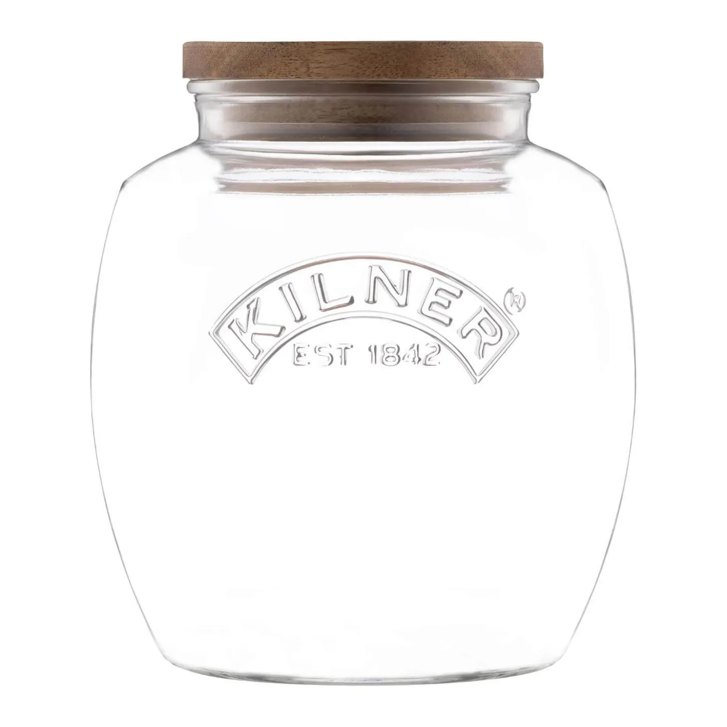 Kilner presents the 2 Litre Universal Glass Jar, that now comes with an acacia wooden push-top lid, providing a stylish and practical storage solution for dry foods. They are also great for organising cosmetics and toiletries in the bathroom. An attractive storage jar for your kitchen countertop.