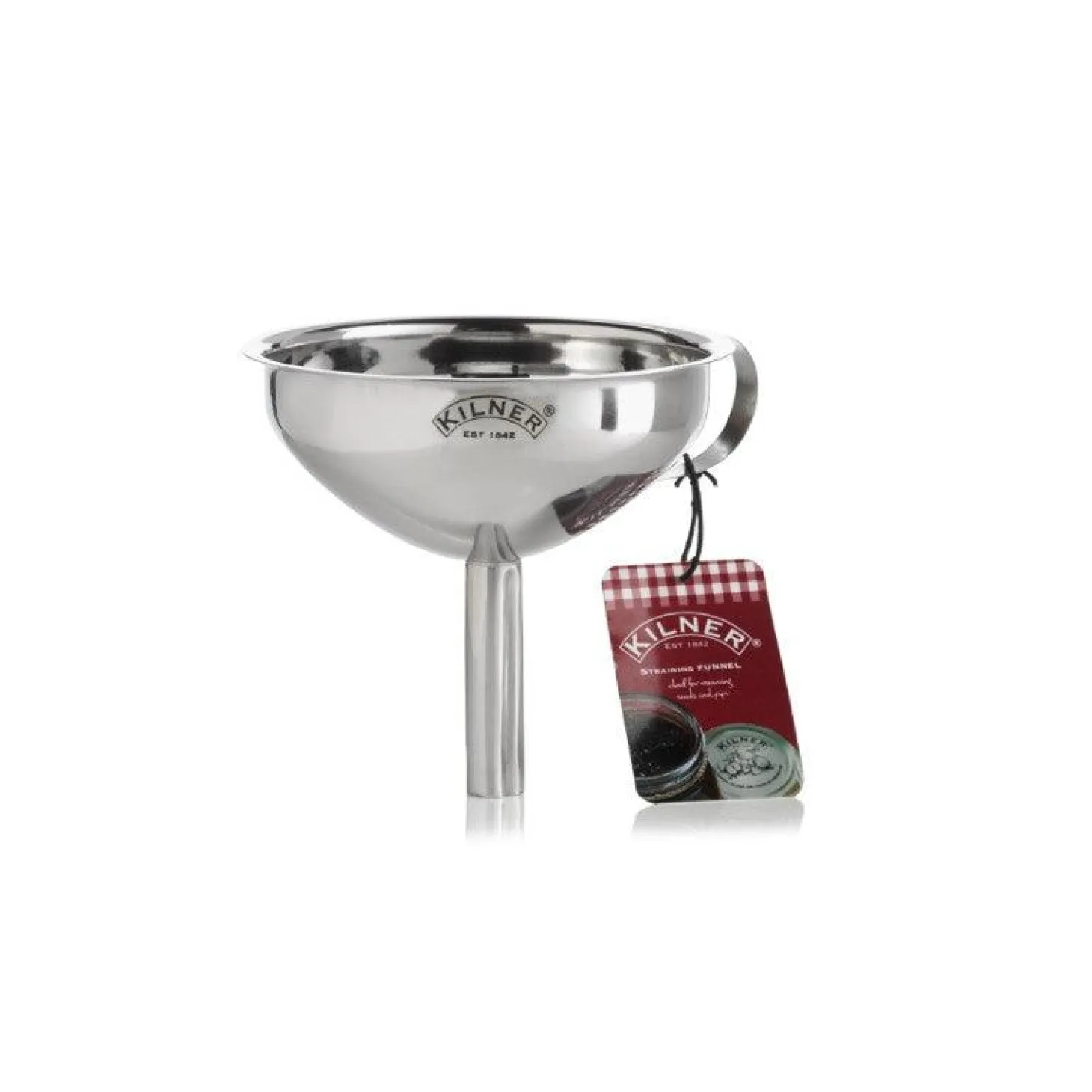 The Kilner Stainless Steel Straining Funnel features a straining disc to filter out any unwanted preserving ingredients and a long shaft to allow you to direct your pickles and preserves cleanly and neatly.