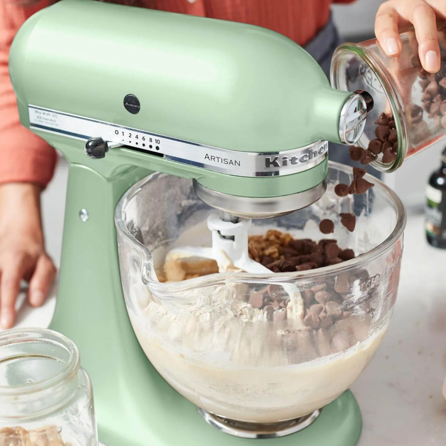 This iconic food mixer in Pistachio forms part of the best-selling KitchenAid Artisan Stand Mixer collection. Designed to perform a wide variety of food preparation tasks which can be further enhanced by utilising the integrated attachment hub. This mixer has several essential features and functions including a multipurpose attachment hub, direct-drive motor, robust metal body and variable speed settings. Includes a 5-year guarantee.