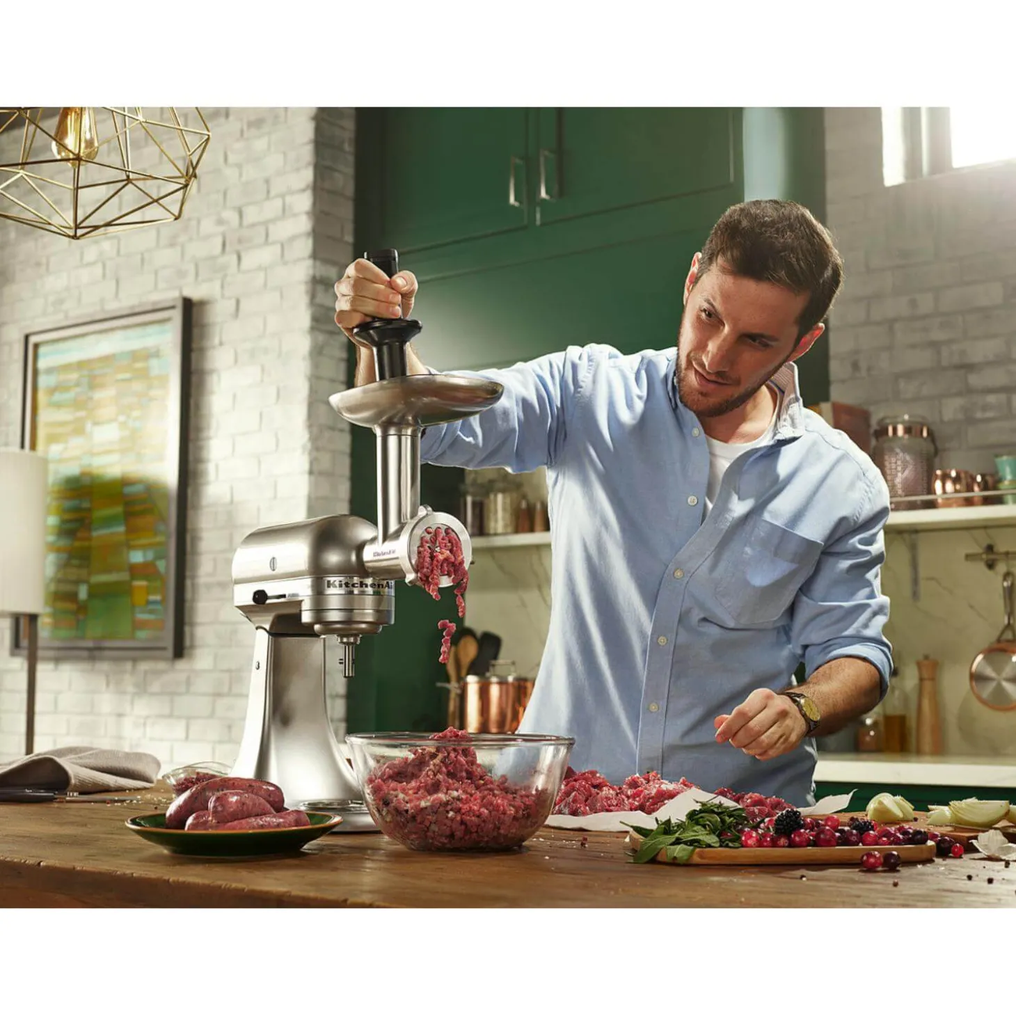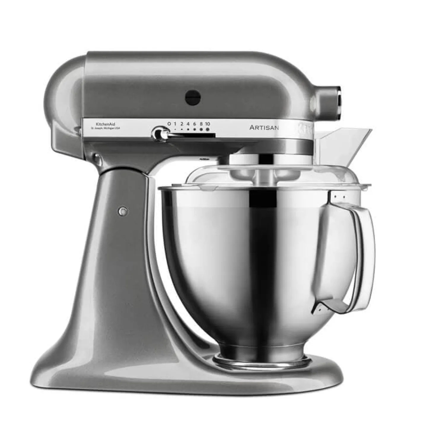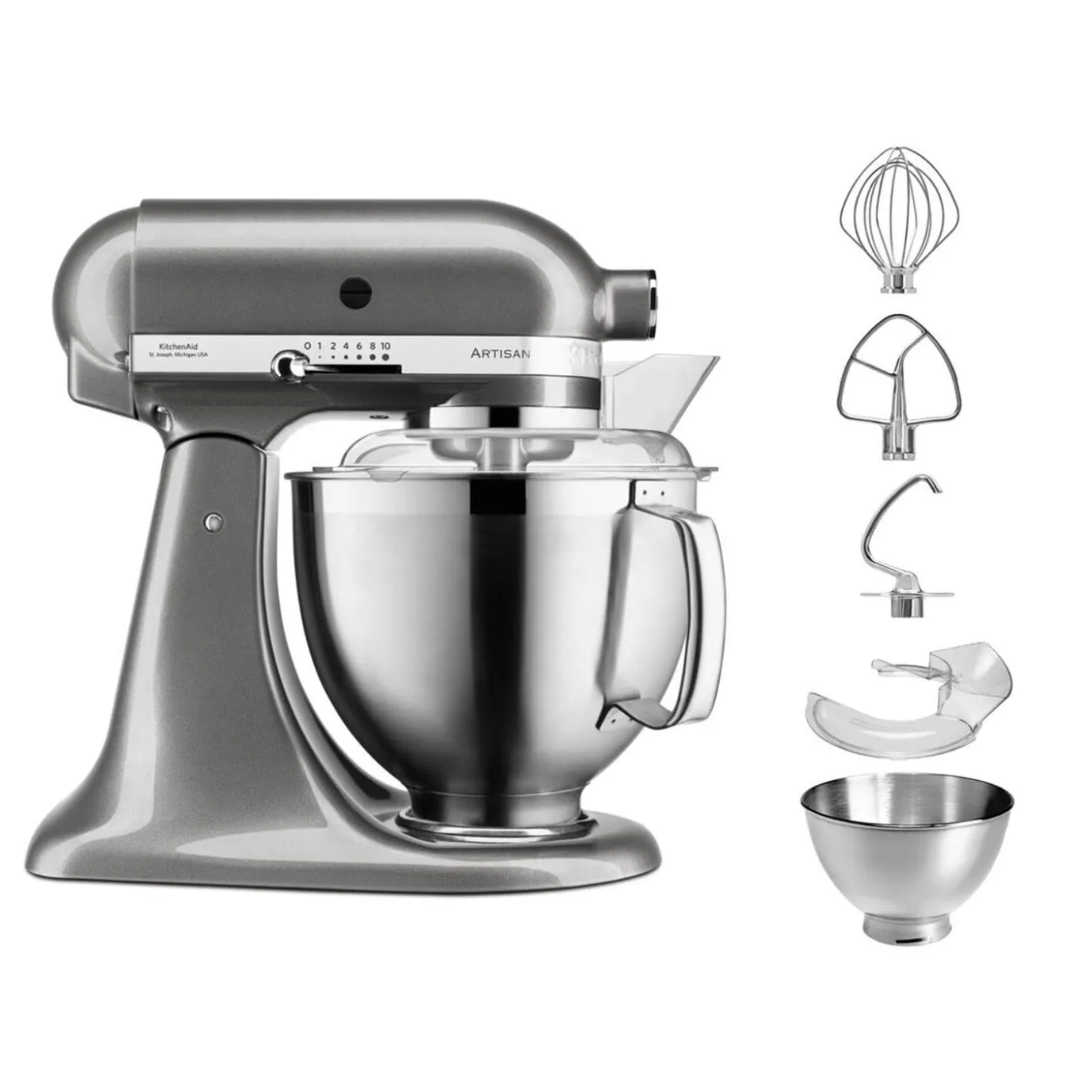 KitchenAid presents the 185 Artisan Tilt-Head Stand Mixer in Medallion Silver, ideal for all your baking needs. This mixer enables you to create a wide variety of recipes with endless possibilities. It features a multipurpose attachment hub, a direct drive motor, and a sturdy metal body finished in a stylish medallion silver. This stand mixer is a perfect addition to any baker’s kitchen!