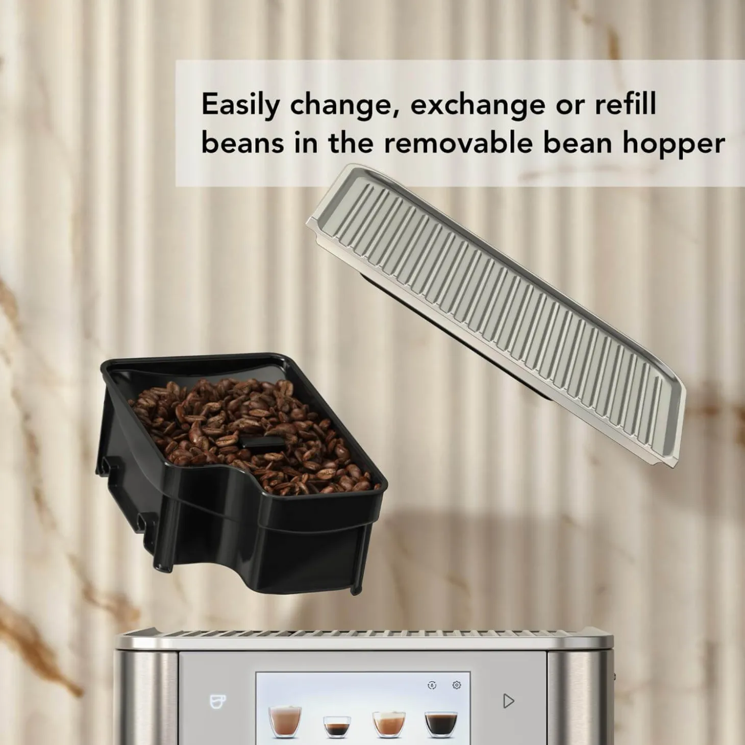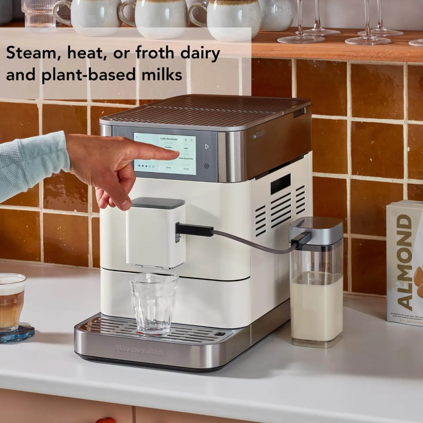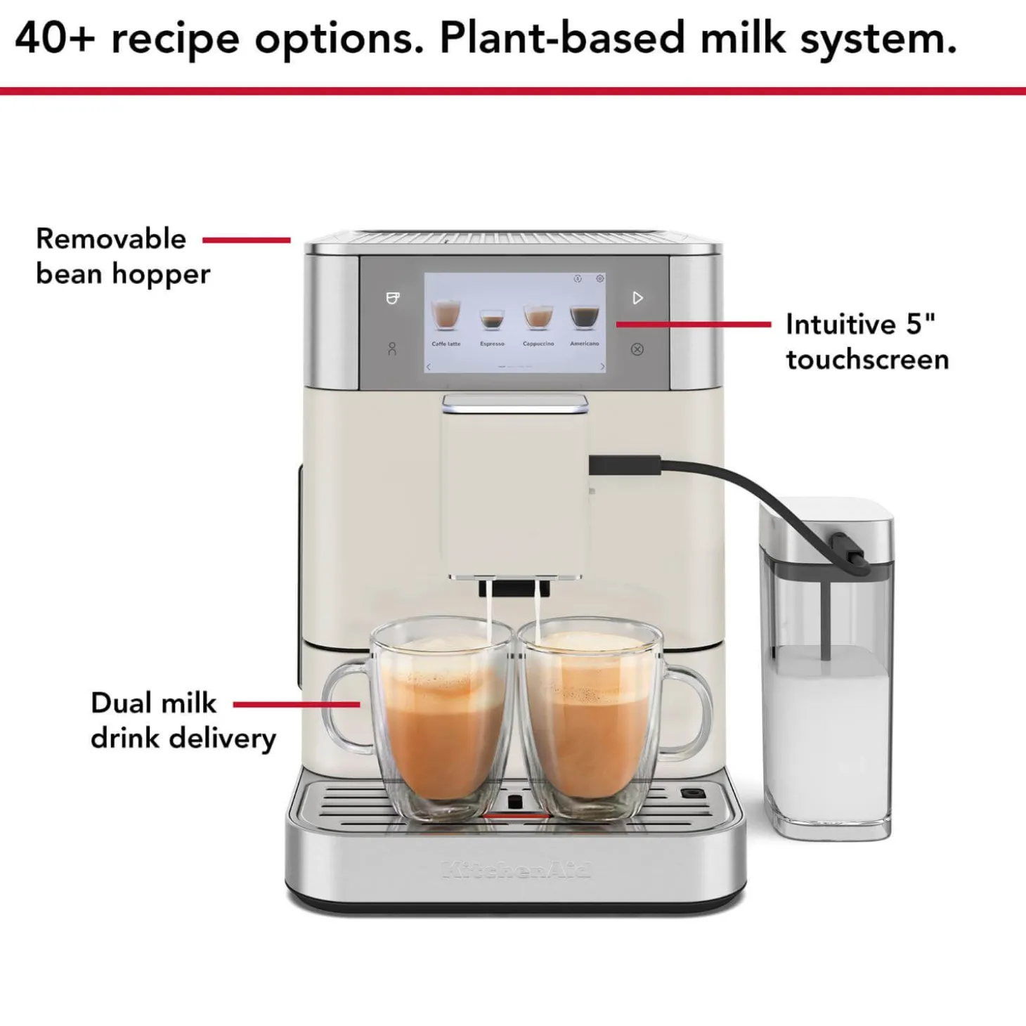 This container can be refrigerated to keep its contents cool and fresh when not in use. You can automatically steam or froth the exact amount of milk needed for a perfectly balanced espresso drink. Simply fill the container with your choice of milk and dual milk delivery allows you to create two coffees simultaneously. - Touchscreen Control with Plant-based SettingÂ
