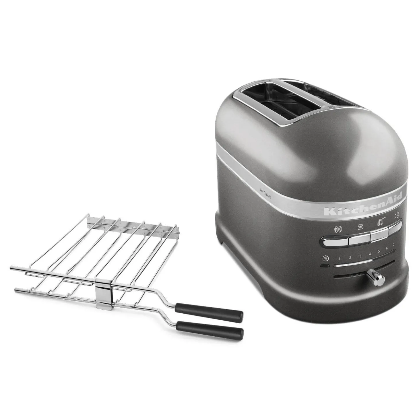 The KitchenAid Artisan 2 Slot Toaster provides unmatched toasting performance thanks to its useful built-in functionality. The ‘Auto Sensor’ automatically lowers and lifts all types of toast before browning according to an LED timer which provides 7 grades of “golden”, this handy feature will also help keep toast warm until you get back. Aside from having some great features the Artisan toaster is also incredibly stylish featuring a smooth, rounded exterior with an eye-catching medallion silver finish. There’s also an identical 4 slot Artisan toaster available – perfect for large households.