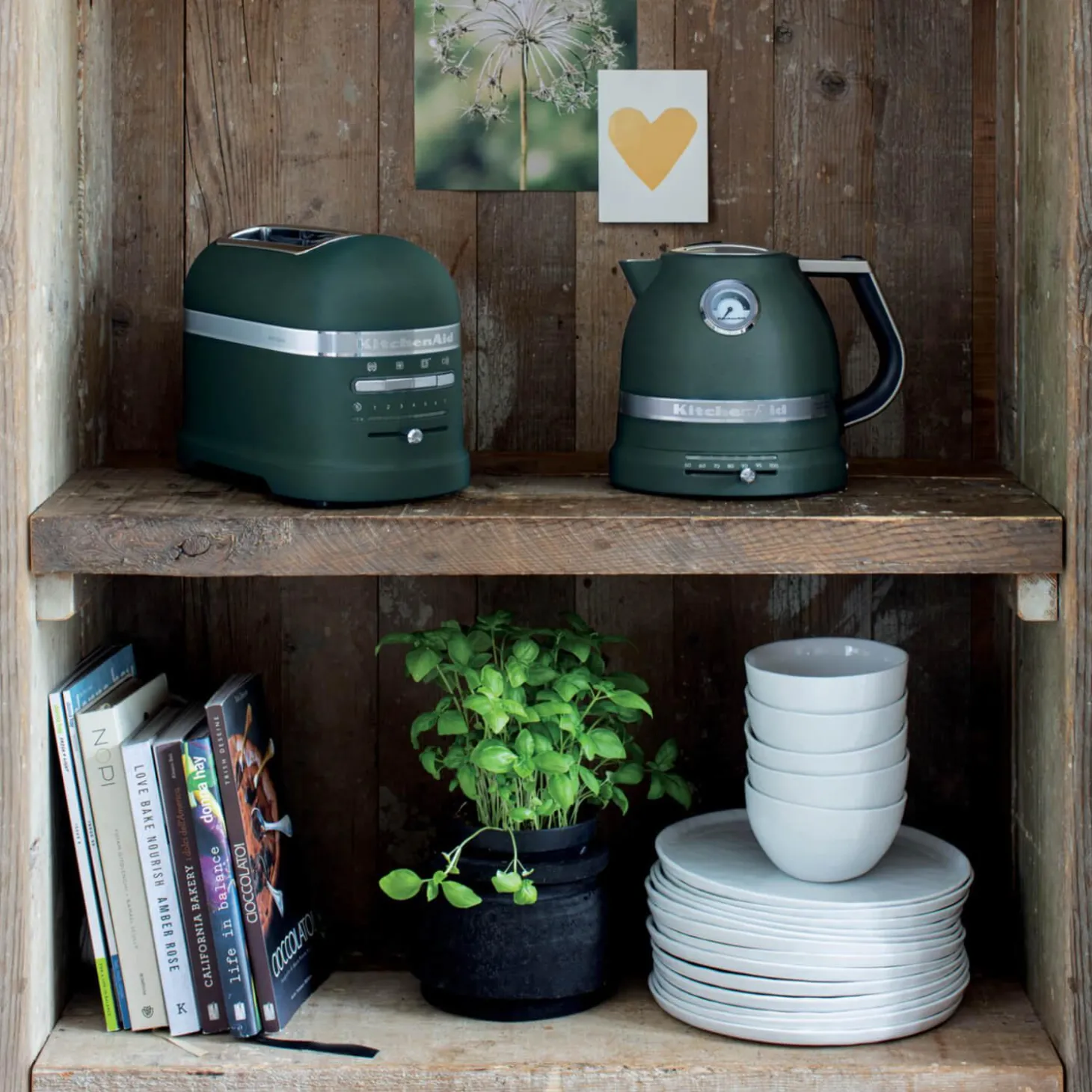 Each item in the KitchenAid Artisan kettle and toaster set features a distinctive retro exterior featuring curved edges, elements and polished accents that are instantly attention-grabbing. Designed to make a statement each item in the set is equipped with the latest features and functionality for the modern kitchen. Choose from a selection of popular, best-selling colours.