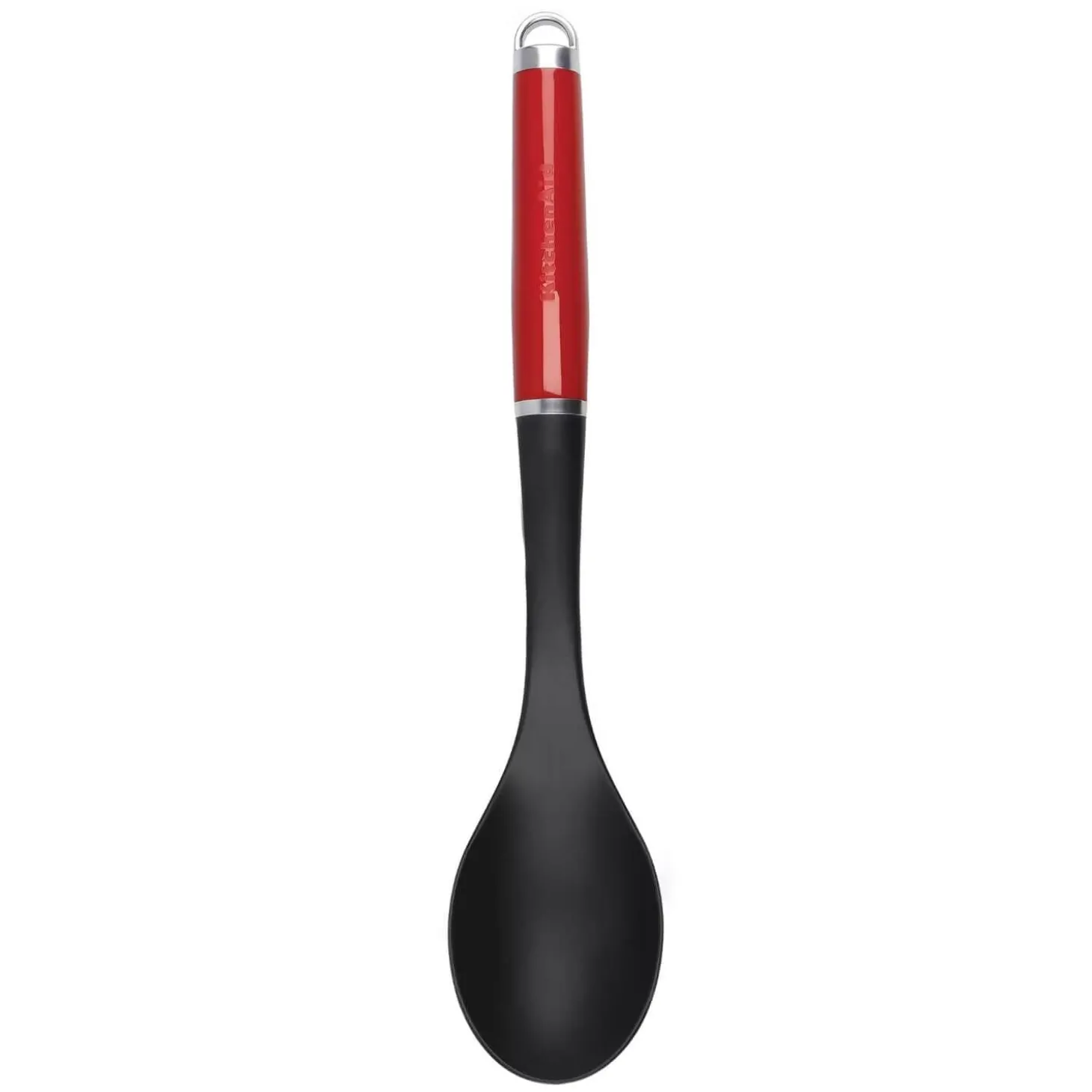 KitchenAid presents this Plastic Basting Spoon in Empire Red. Featuring a large head for stirring chunky soups, spooning sauces over cooked meats and mixing cake batters quickly and efficiently. This spoon is safe to use on all types of cookware, including non-stick and is also heat resistant up to 232°C making this tool a kitchen essential!