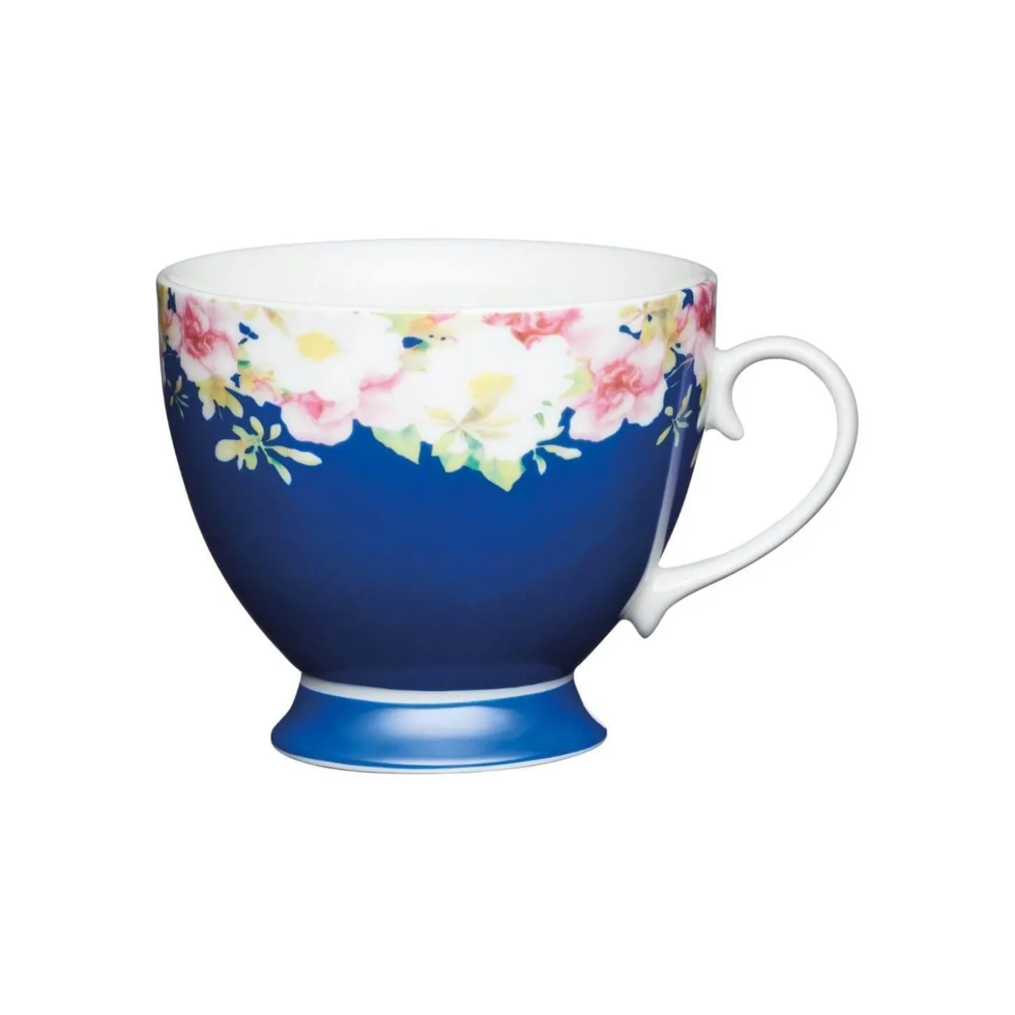 Enjoy your favourite hot drinks with this elegant footed mug from KitchenCraft. Created from high-quality china this mug has a 400ml capacity with a large elegant handle that complements the large footed base. The exterior of this item has a colourful Blue Border design, there are also many other colours and patterns to choose from.