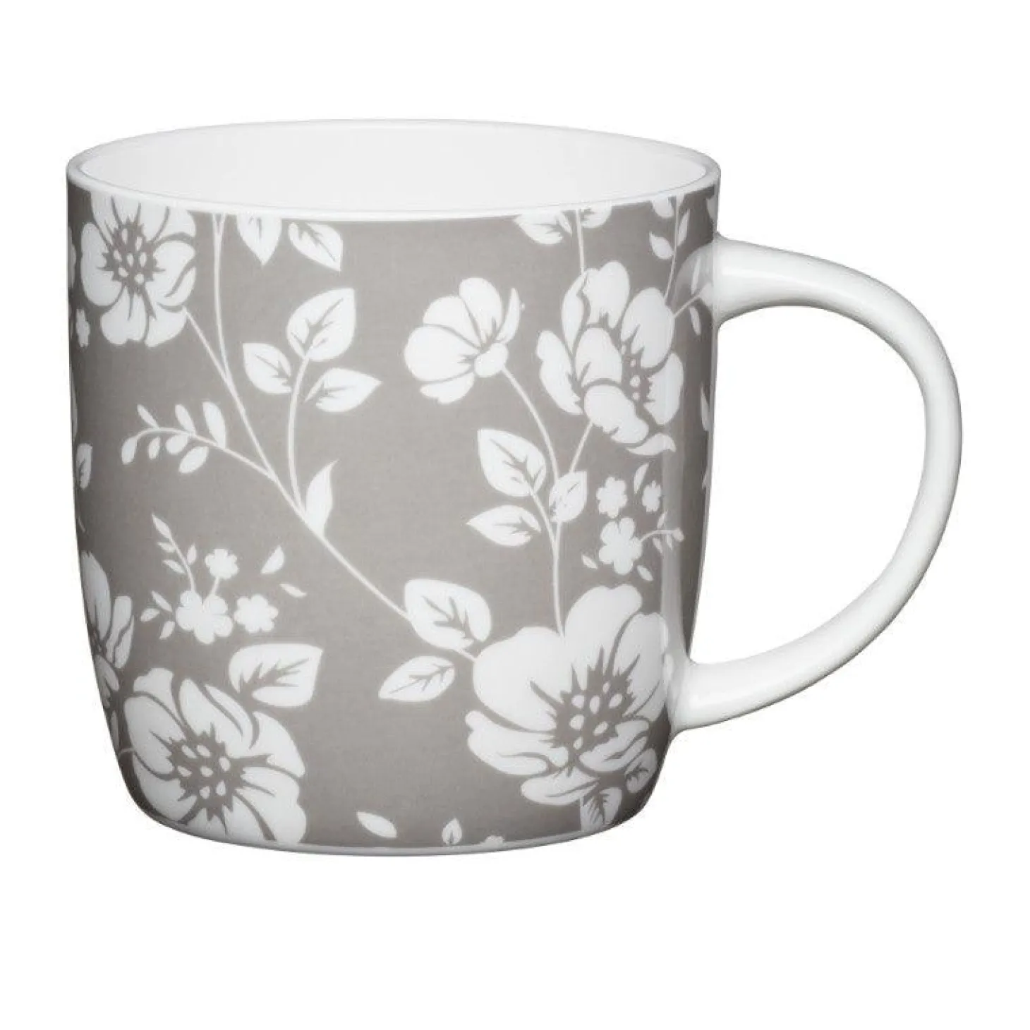 Enjoy your favourite hot drinks with the Kitchencraft Grey Floral 425ml Barrel Mug forming part of the Barrell Mug collection by Kitchencraft. Each mug features a traditional barrel shape body and ample handles making them ideal for clutching with both hands. Each mug in the Barrel range features bold contrasting colour prints which are instantly eye-catching.
