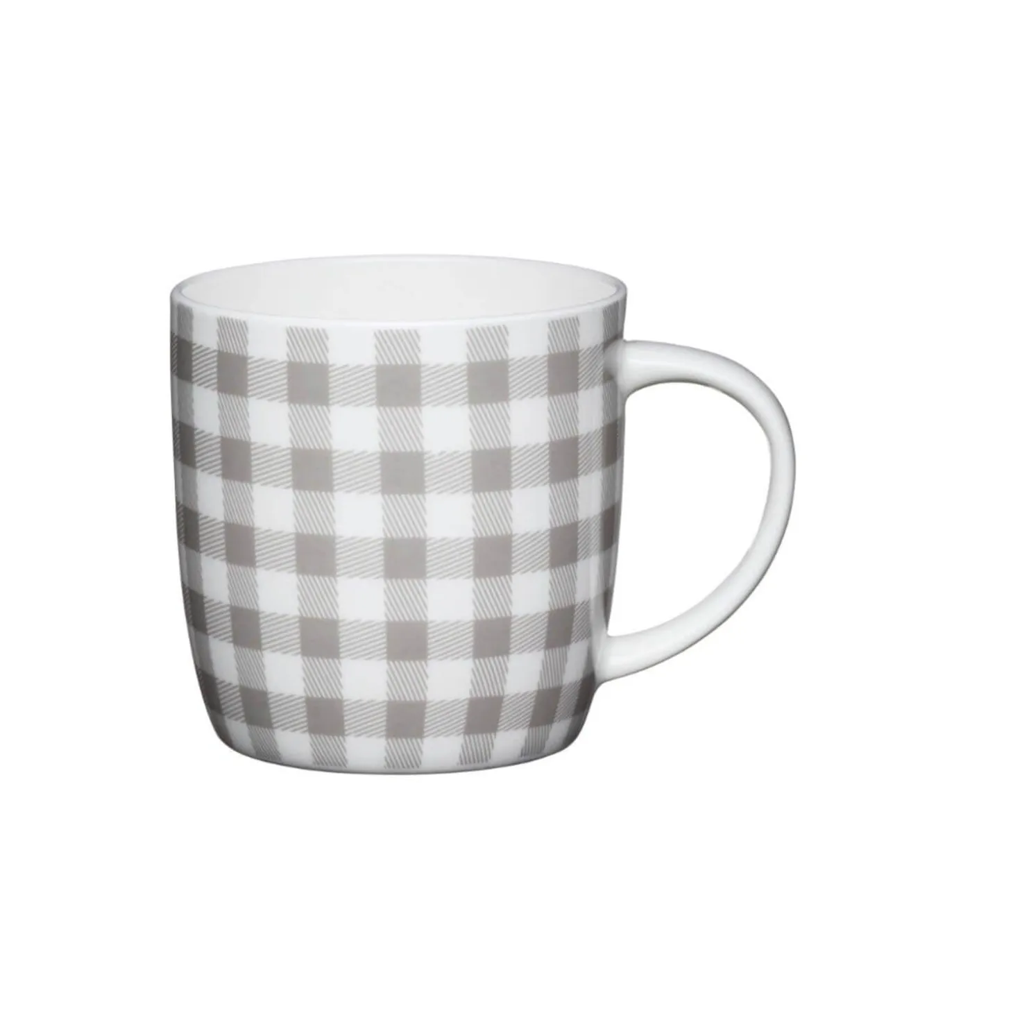 Enjoy your favourite hot drinks with the Kitchencraft Grey Gingham 425ml Barrel Mug forming part of the Barrell Mug collection by Kitchencraft. Each mug features a traditional barrel shape body and ample handles making them ideal for clutching with both hands. Each mug in the Barrel range features bold contrasting colour prints which are instantly eye-catching.