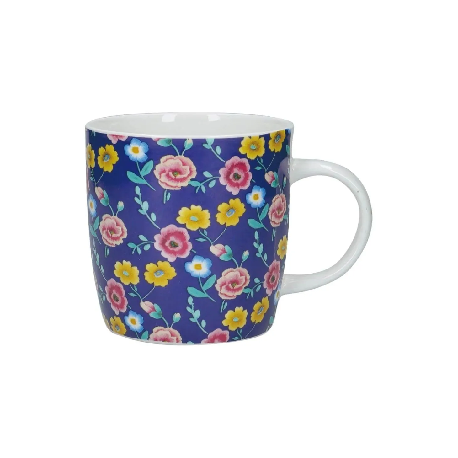 Enjoy your favourite hot drinks with the Kitchencraft Navy Floral 425ml Barrel Mug forming part of the Barrell Mug collection by Kitchencraft. Each mug features a traditional barrel shape body and ample handles making them ideal for clutching with both hands. Each mug in the Barrel range features bold eye-catching colour prints.