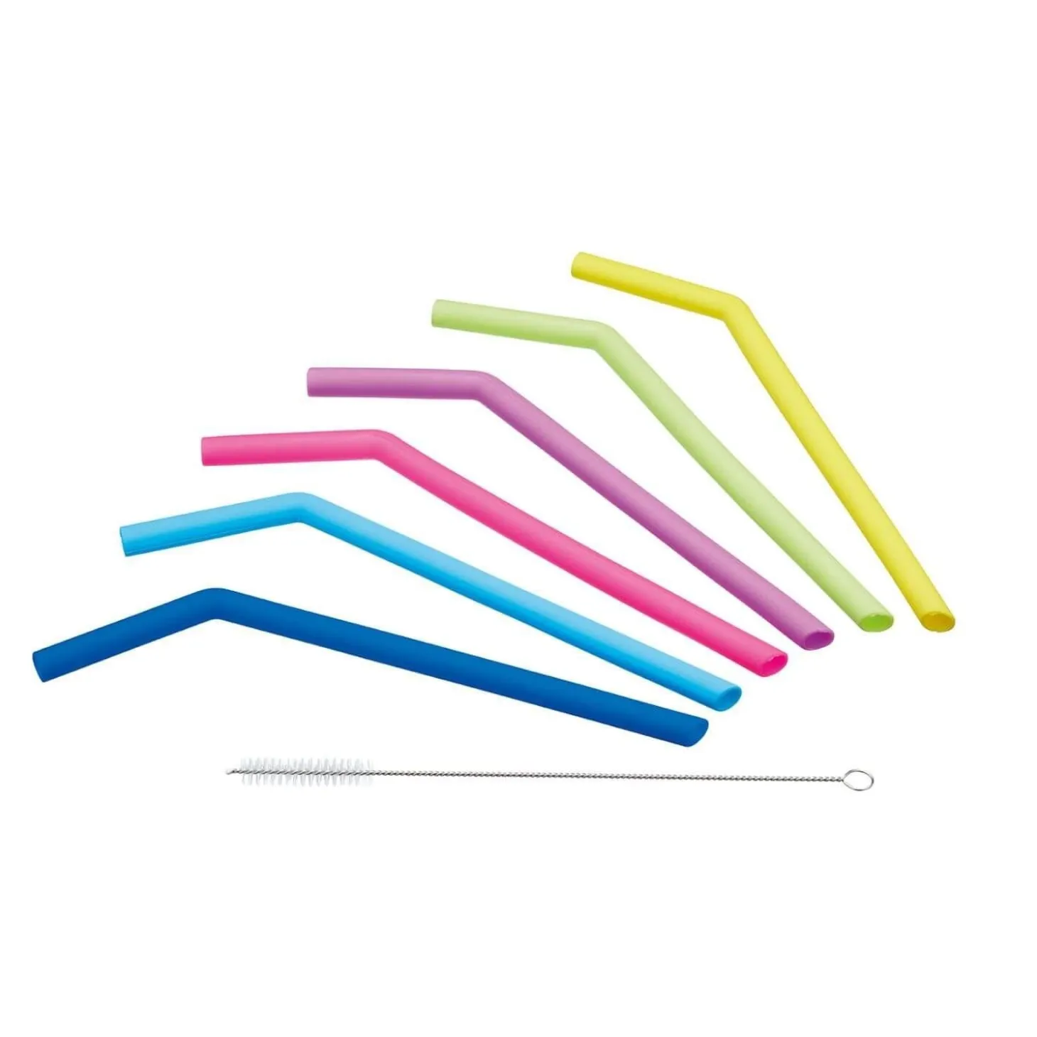 This pack of 6 reusable silicone drinking straws by KitchenCraft offer an environmentally friendly alternative to conventional plastic drinking straws. Each straw has been created using high quality food grade silicone which is BPA Free and dishwasher safe. Extra wide to accommodate thicker drinks such as milkshakes and smoothies, the pack also contains a handy cleaning brush to assist with cleaning. Reduce waste and protect the planet; ideal for everyday use, parties and get togethers.