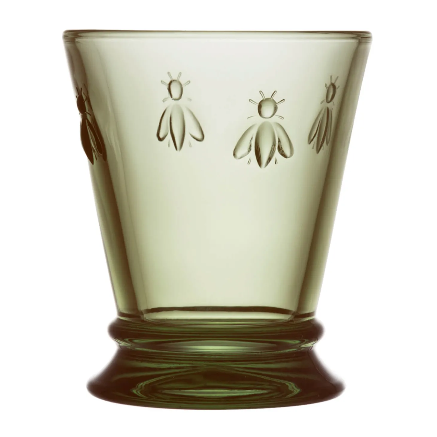 La Rochere introduces the Bee Embossed range, including this 270ml Olive Green goblet tumbler glass. A unique style with a Napoleonic bee pattern and thick and heavy design adds stability as well as comfortable to hold, perfect for a cool and refreshing drink or even wine with friends and family. Other colours and sizes are also available in this collection.