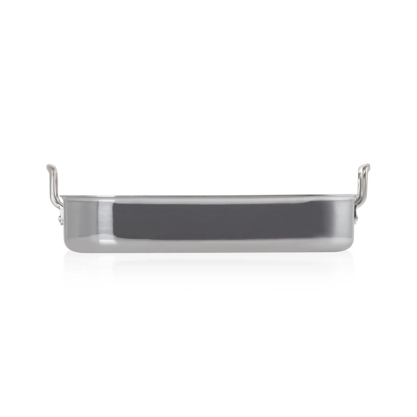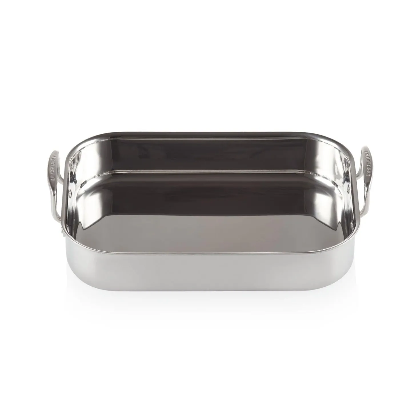 Le Creuset presents the 3 Ply range which includes this 35cm stainless steel rectangle roaster. Ideal for roasting a joint of meat, creating a tasty pasta bake for all the family or even baking sweet & savoury treats. Each layer ensures fast and even heat distribution, enabling food to cook from bottom to top of the dish, featuring ergonomic handles which allow an easy transition from the oven to the counter. Suitable for use on all hobs including induction whilst also being oven, grill, freezer and dishwasher safe (hand wash recommended) with a lifetime guarantee.