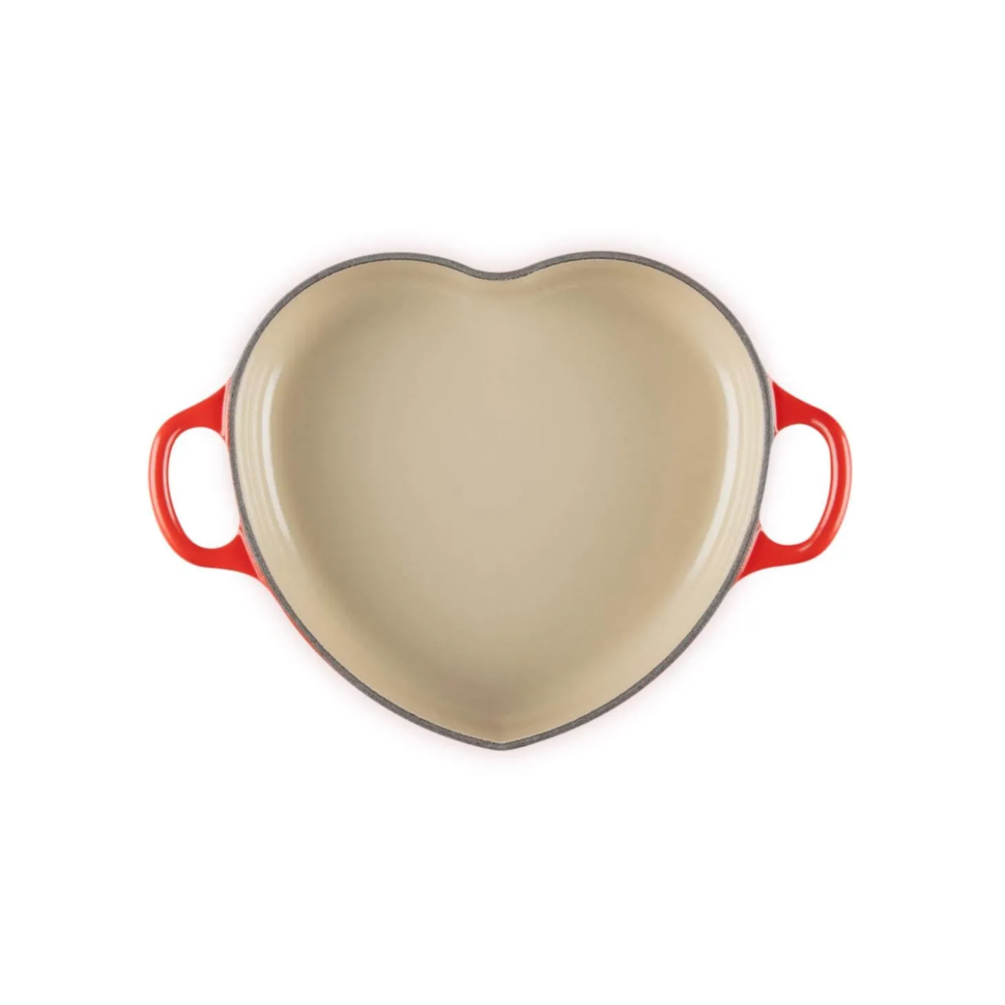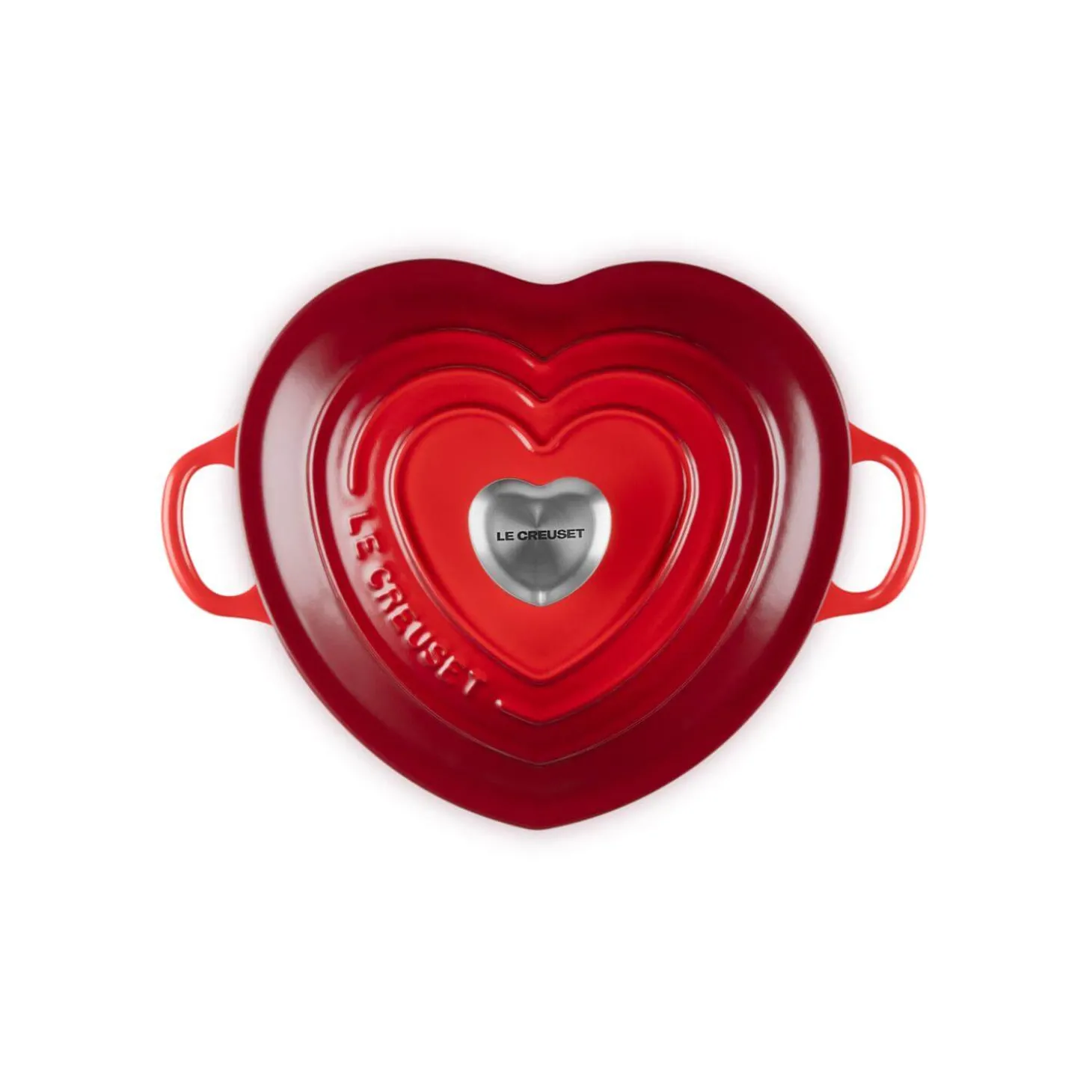 Le Creuset presents the Cast Iron Heart Shaped Dish with lid in Cerise as part of their heart collection. A versatile and timeless choice this dish can be applied to a variety of recipes including small casserole dishes, desserts and much more. Each cast iron piece has been handcrafted in France by skilled craftsmen with an expert enamel finish that is easy to clean and does not absorb stains or odours. These dishes can be used on all hob types including induction and feature an ergonomic stainless steel heart-shaped knob with the Le Creuset logo visible on the top.