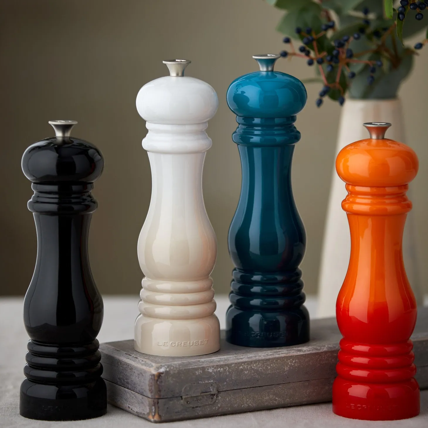 This stylish salt mill in Black forms part of the Classic Salt and Pepper Mill collection by Le Creuset. Each item in the collection has been created from tough ABS plastic with an adjustable corrosion-resistant grinding mechanism that adjusts the coarseness of granules by twisting the embossed stainless steel knob. These mills are perfect for mixing and matching and beautifully complement other Le Creuset items including the Cast Iron and Stoneware ranges.