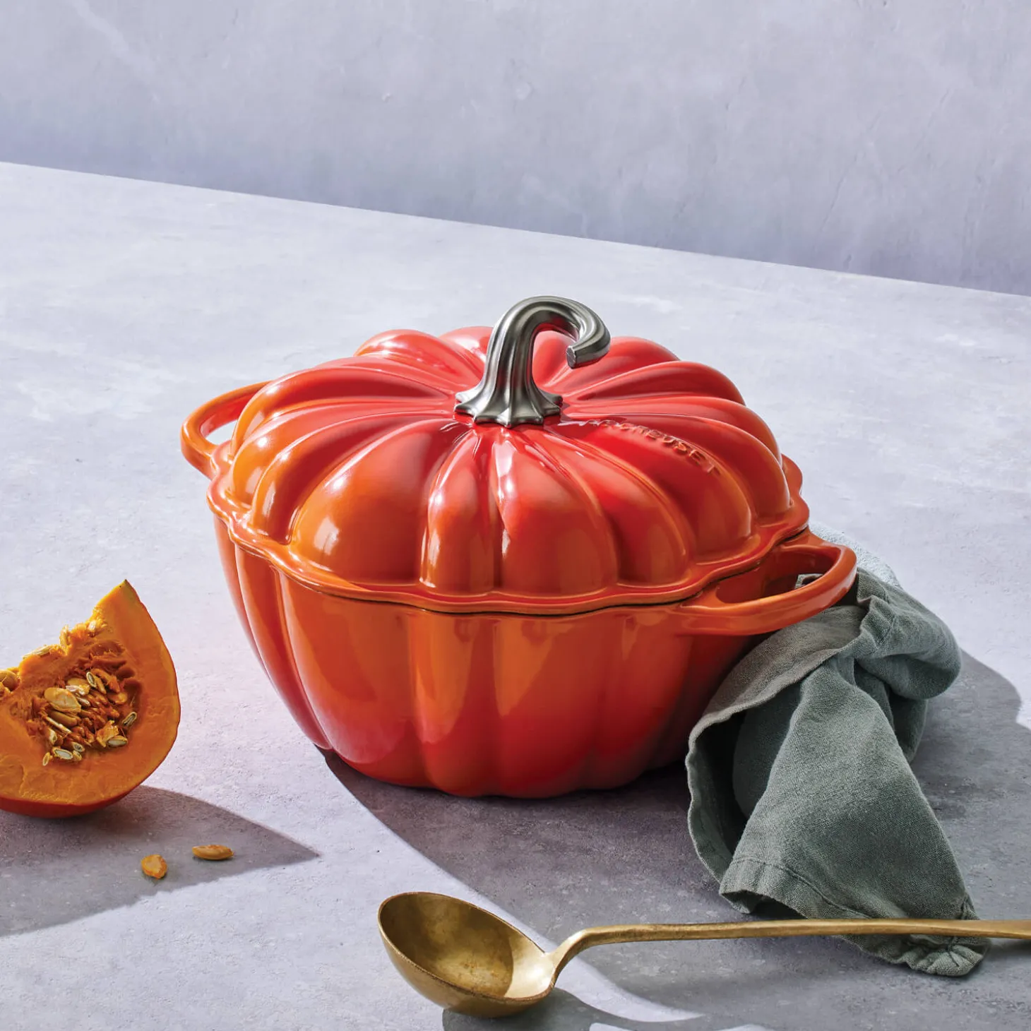 The Signature cast iron 24cm pumpkin casserole dish in volcanic (orange) by Le Creuset is a timeless kitchen essential. The pumpkin design dish can be applied to a whole variety of recipes ranging from stews, roasts, bread and much more during the Halloween period, or throughout the year and will definitely be a conversation starter. Each item in the Cast Iron range is handcrafted in France and can be used on all hob types including induction.Â