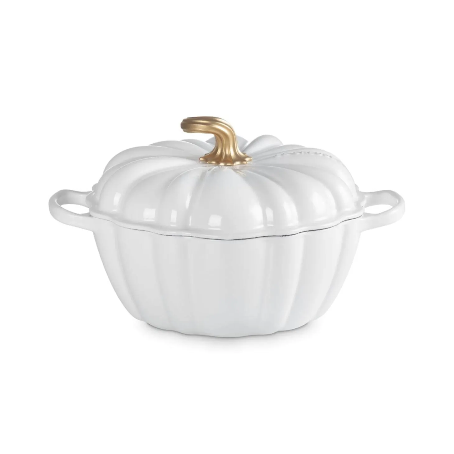 The Signature Cast Iron 24cm Pumpkin Casserole Dish in White by Le Creuset is a timeless kitchen essential. The pumpkin design dish can be applied to a whole variety of recipes ranging from stews, roasts, bread and much more during the Halloween period, or throughout the year and will definitely be a conversation starter. Each item in the Cast Iron range is handcrafted in France and can be used on all hob types including induction.Â