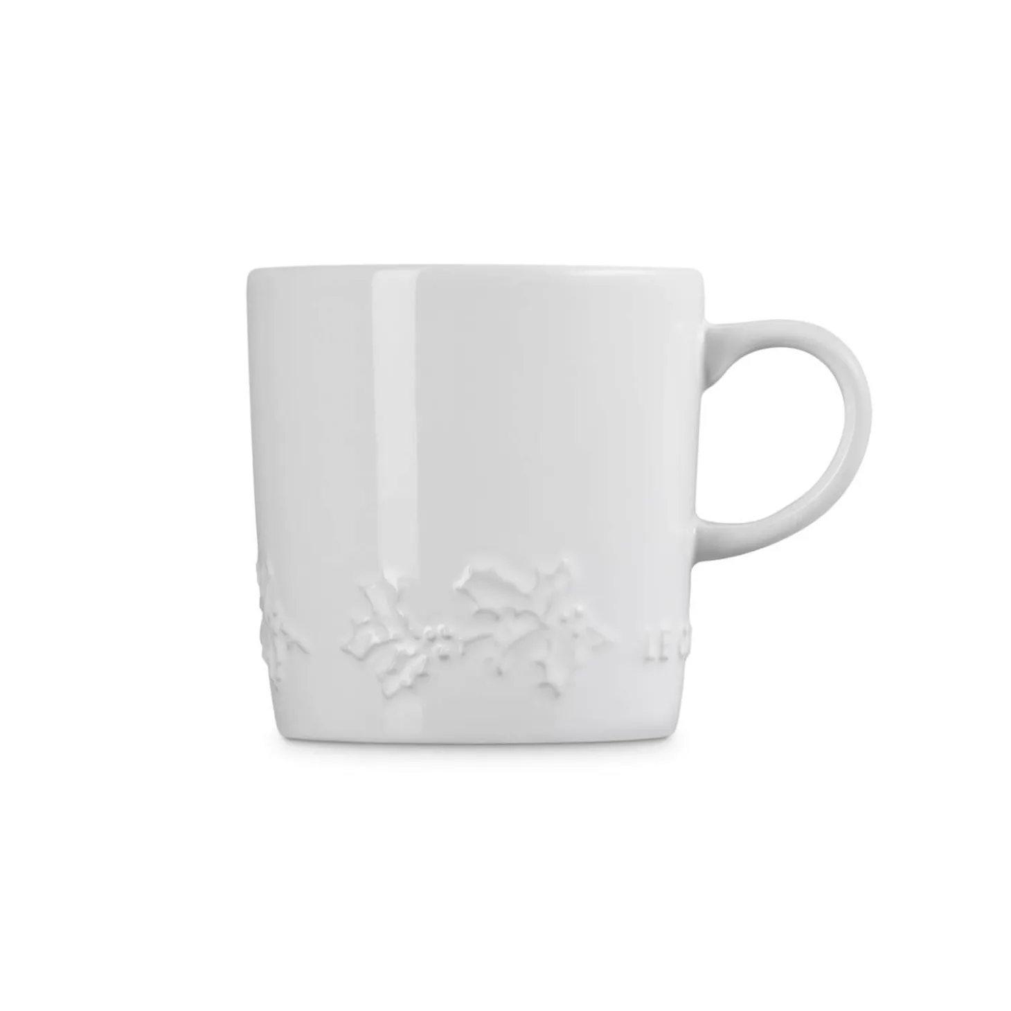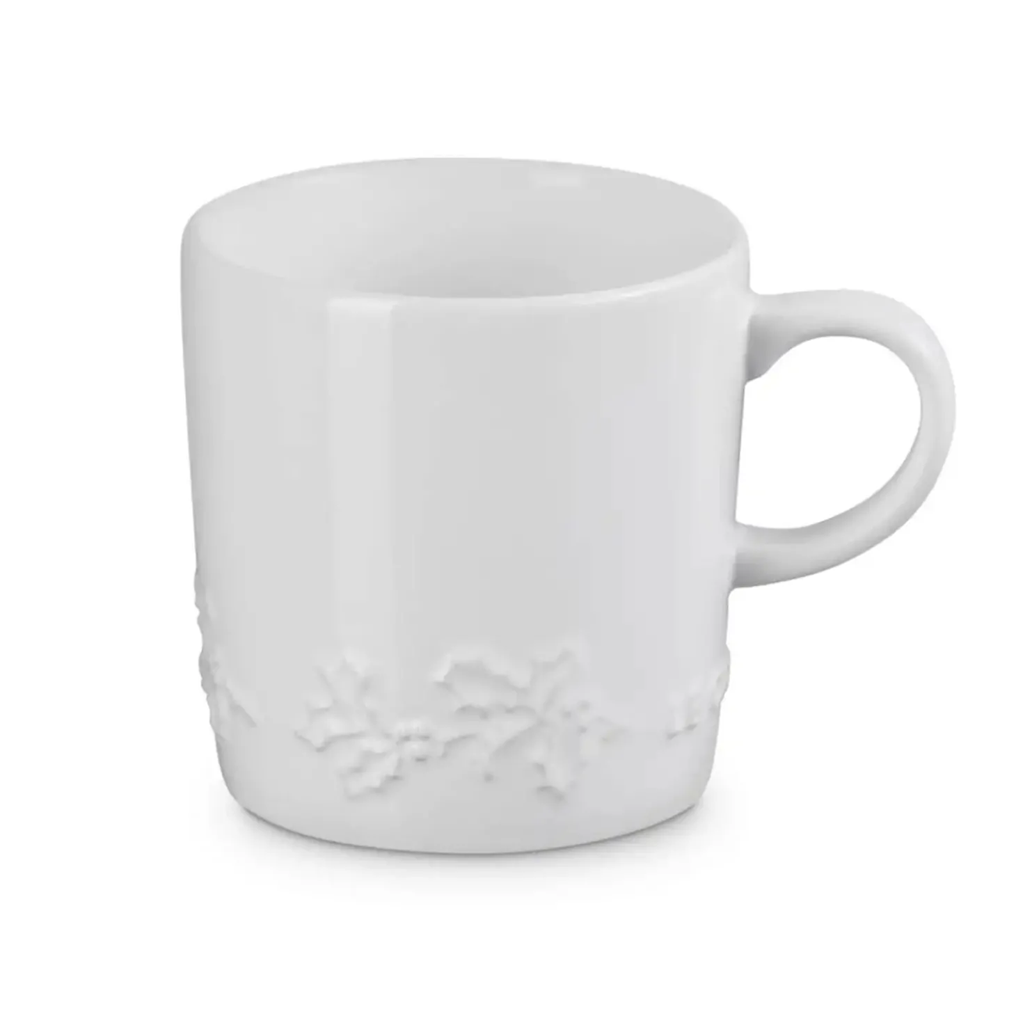 Le Creuset presents the 350ml Stoneware Mug in White, beautifully embossed with a wraparound holly design. Perfect for serving tea, coffee and other hot drinks this coming festive season. Created from specialist clays and fired at high temperatures to ensure unmatched quality and durability. Each item in the stoneware collection has an easy to clean scratch-resistant enamel coating. With a capacity of 350ml and an easy to grip handle, this mug is ideal for frothy coffees, soups and desserts in the comfort of your own home.