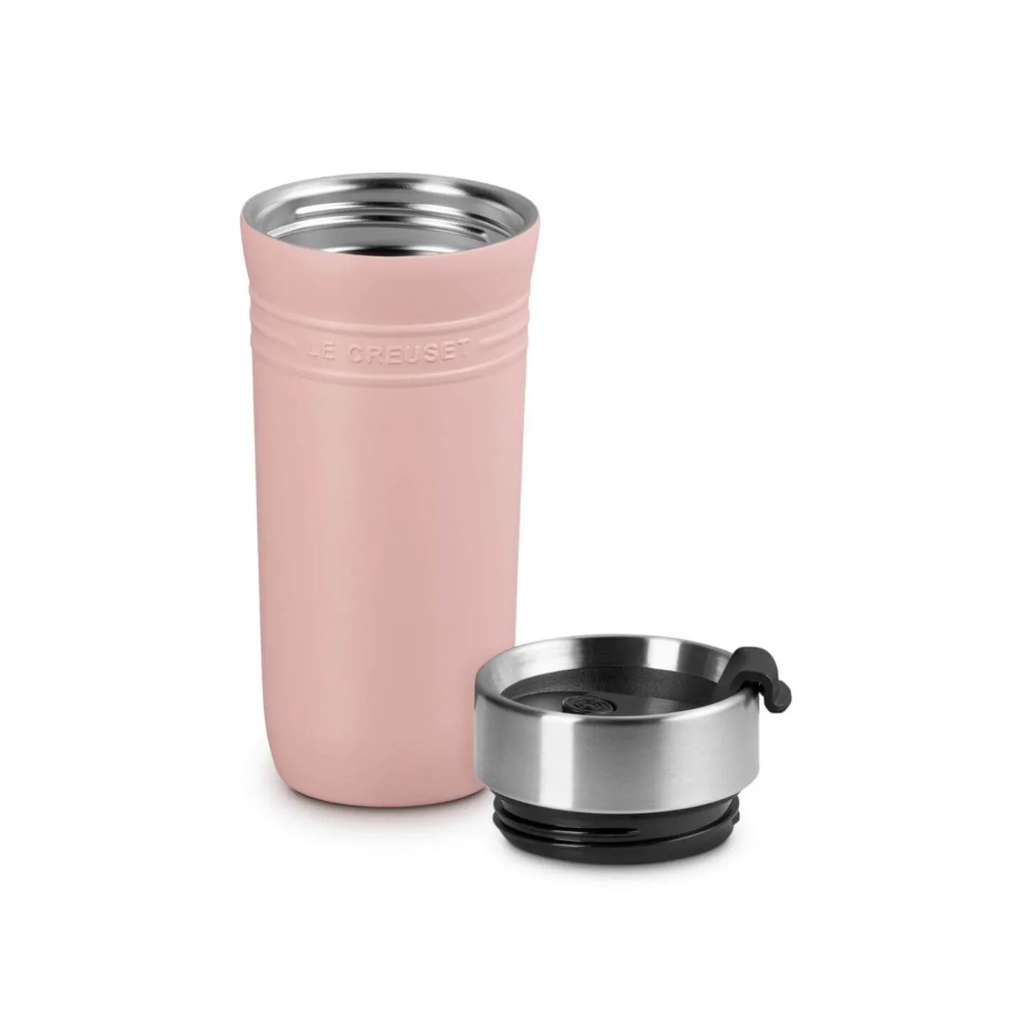 Le Creuset presents the 350ml Insulated Travel Mug in Shell Pink, part of their innovative ‘On The Go’ range. This mug is designed for those who lead an active lifestyle, blending functionality with style. It features a thoughtfully crafted opening that allows for effortless one-handed operation, making it easy to sip your tea or coffee on the go. With double-walled vacuum insulation, this mug effectively keeps your beverage piping hot for several hours. It’s the perfect companion for your commute, a busy day at work, or a relaxing drink in the park.