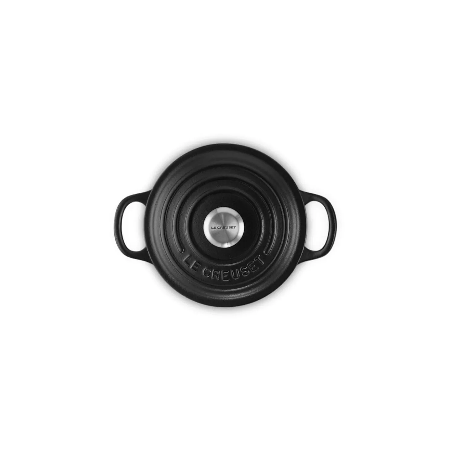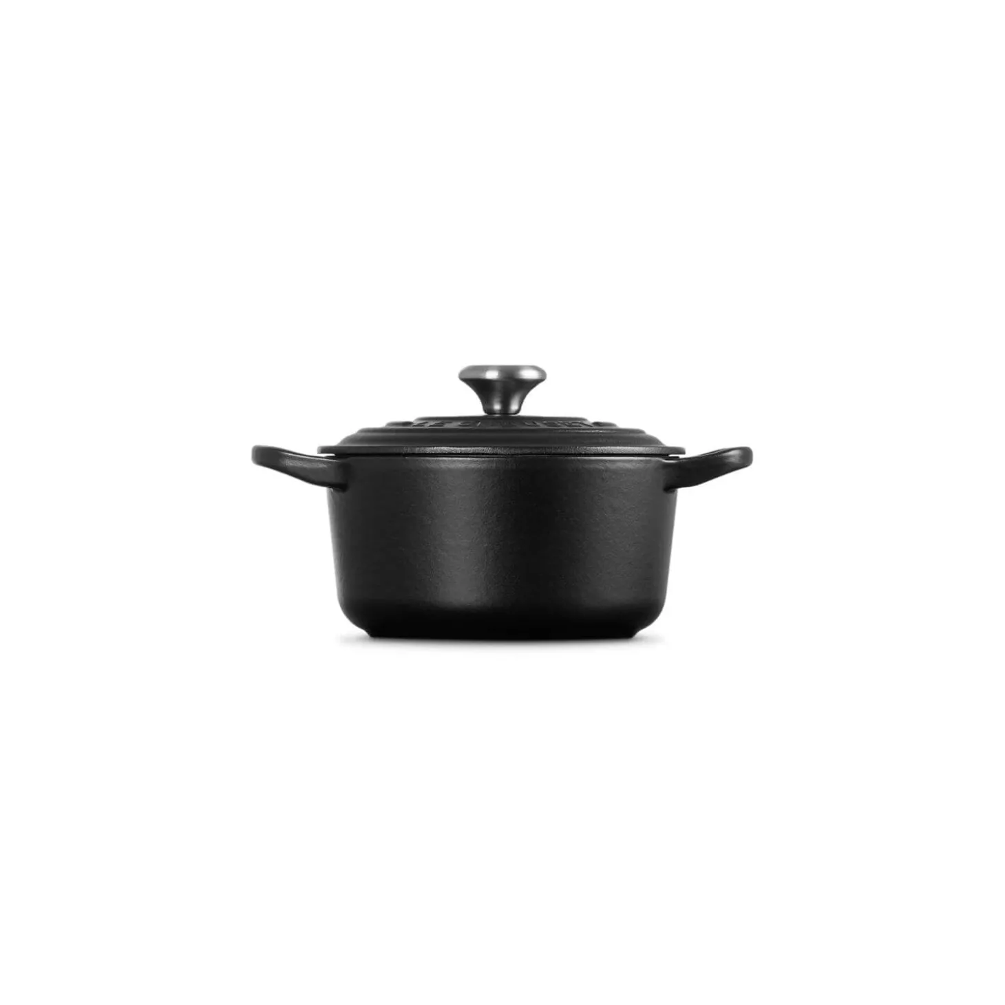 This on-trend Signature cast iron 14cm round casserole by Le Creuset forms part of their Satin Black colour way collection. A versatile and timeless choice this dish can be applied to a variety of recipes including stews, roasts, bread making, soups and much more. Each cast iron piece has been handcrafted in France by skilled craftsmen with an expert enamel finish that is easy to clean and does not absorb stains or odours. These dishes can be used on all hob types including induction and feature an ergonomic stainless steel knob with the Le Creuset logo visible on the top. Other shapes, sizes and colours are also available.