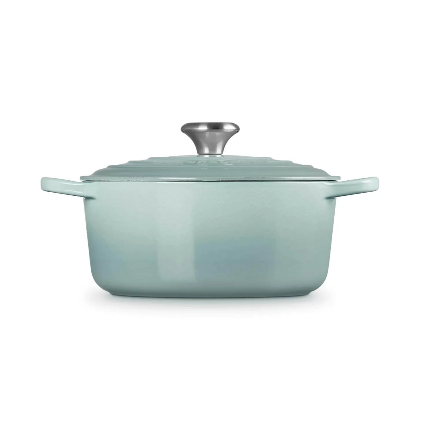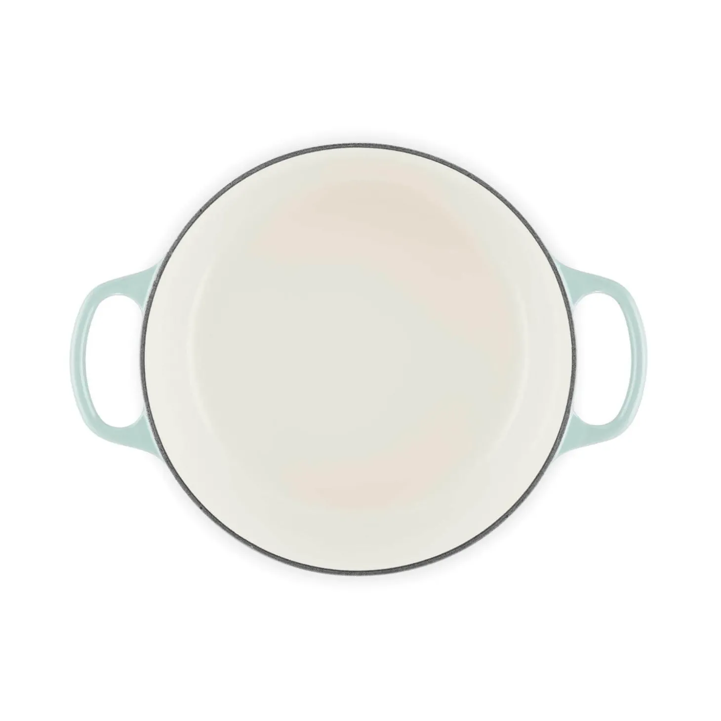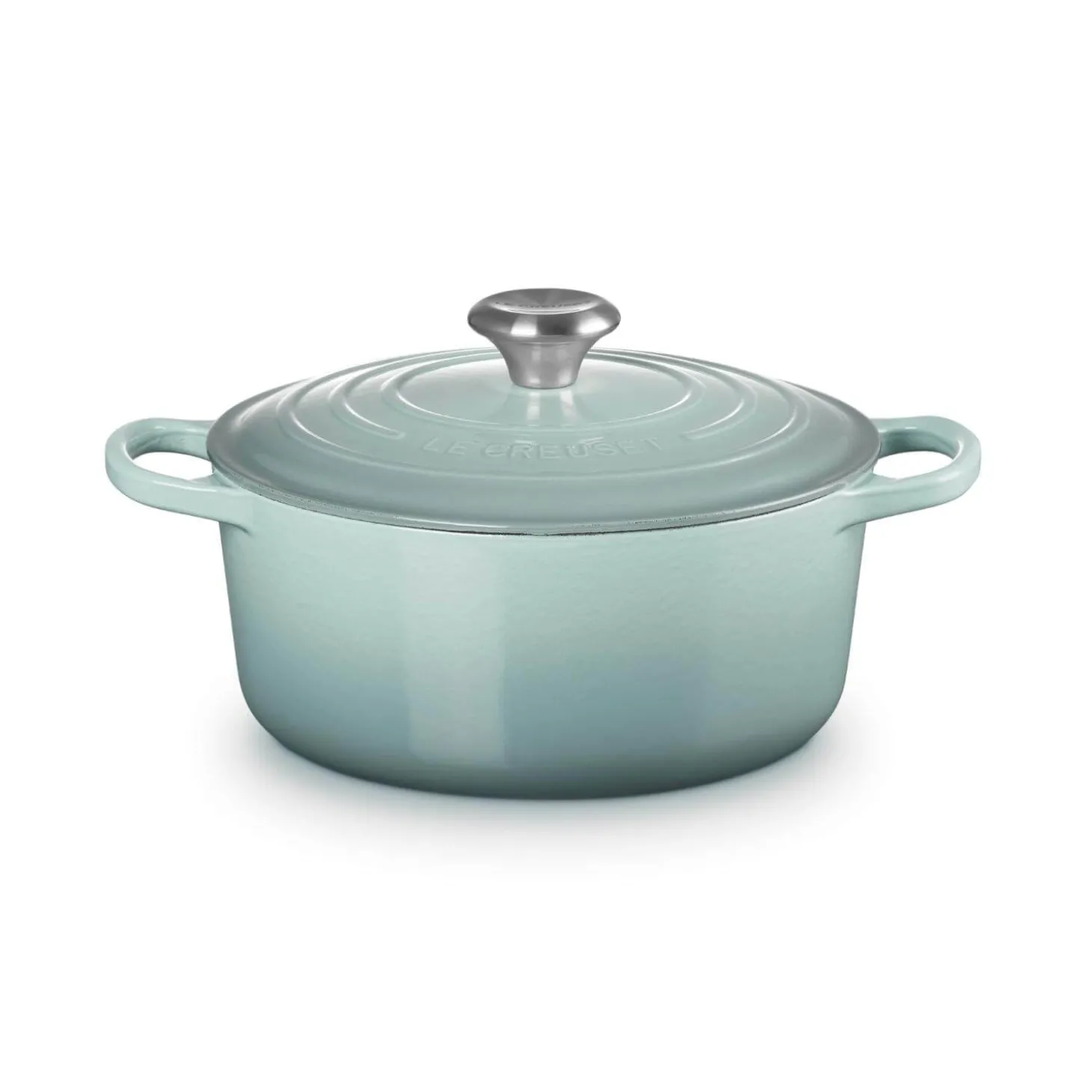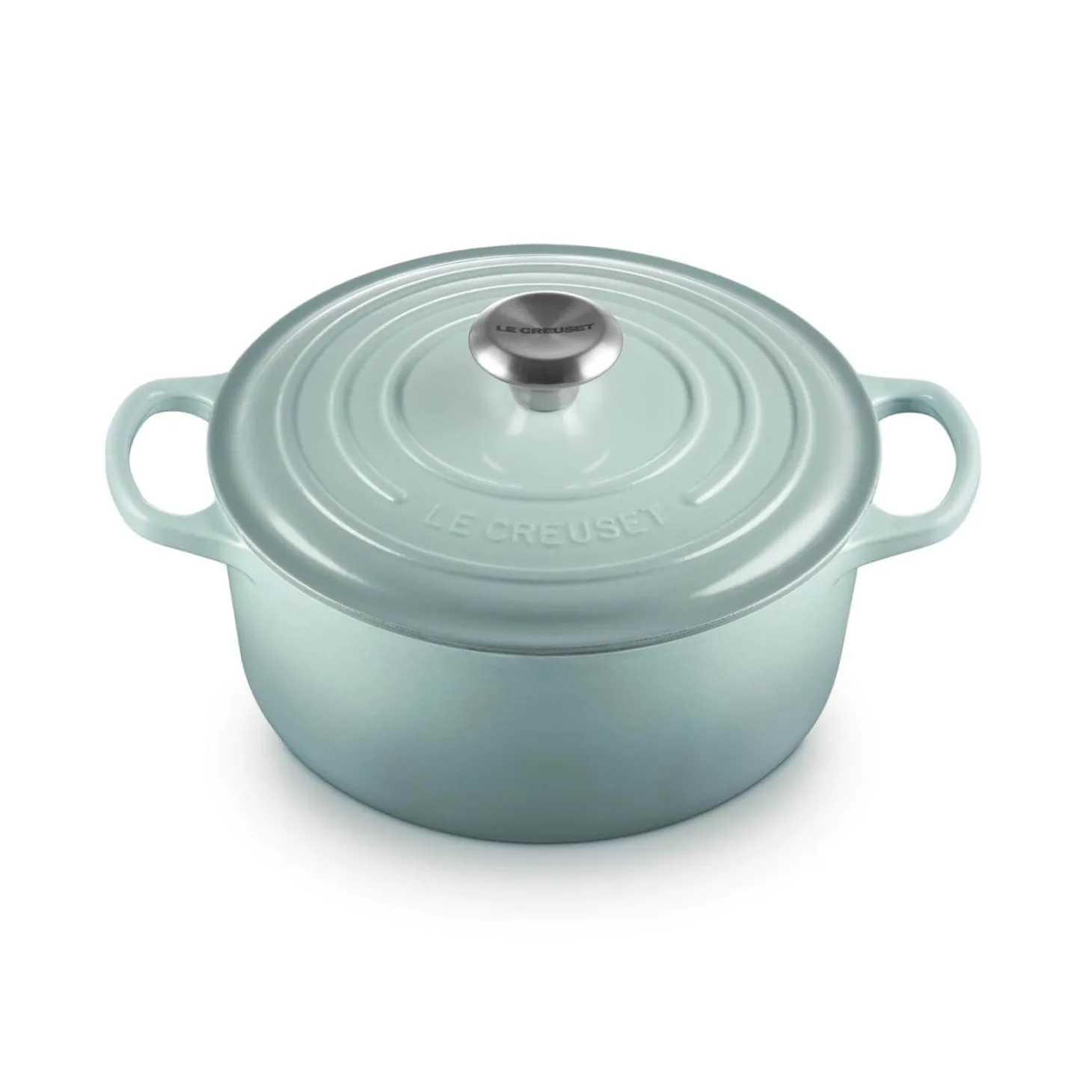 This on-trend Signature cast iron 24cm round casserole by Le Creuset forms part of their Sea Salt colourway collection. A versatile and timeless choice this dish can be applied to a variety of recipes including stews, roasts, bread making, soups and much more. Each cast iron piece has been handcrafted in France by skilled craftsmen with an expert enamel finish that is easy to clean and does not absorb stains or odours. These dishes can be used on all hob types including induction and feature an ergonomic stainless steel knob with the Le Creuset logo visible on the top. Other shapes, sizes and colours are also available.