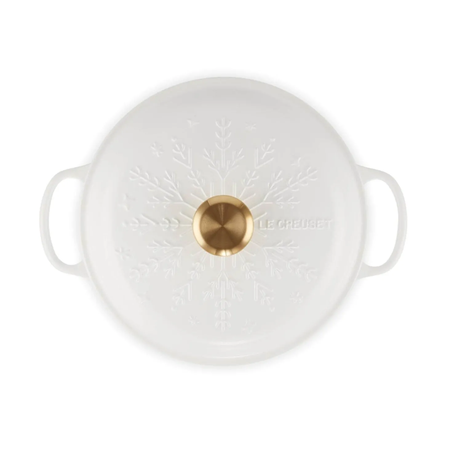 - Embossed snowflakes design with a decorative gold knob
