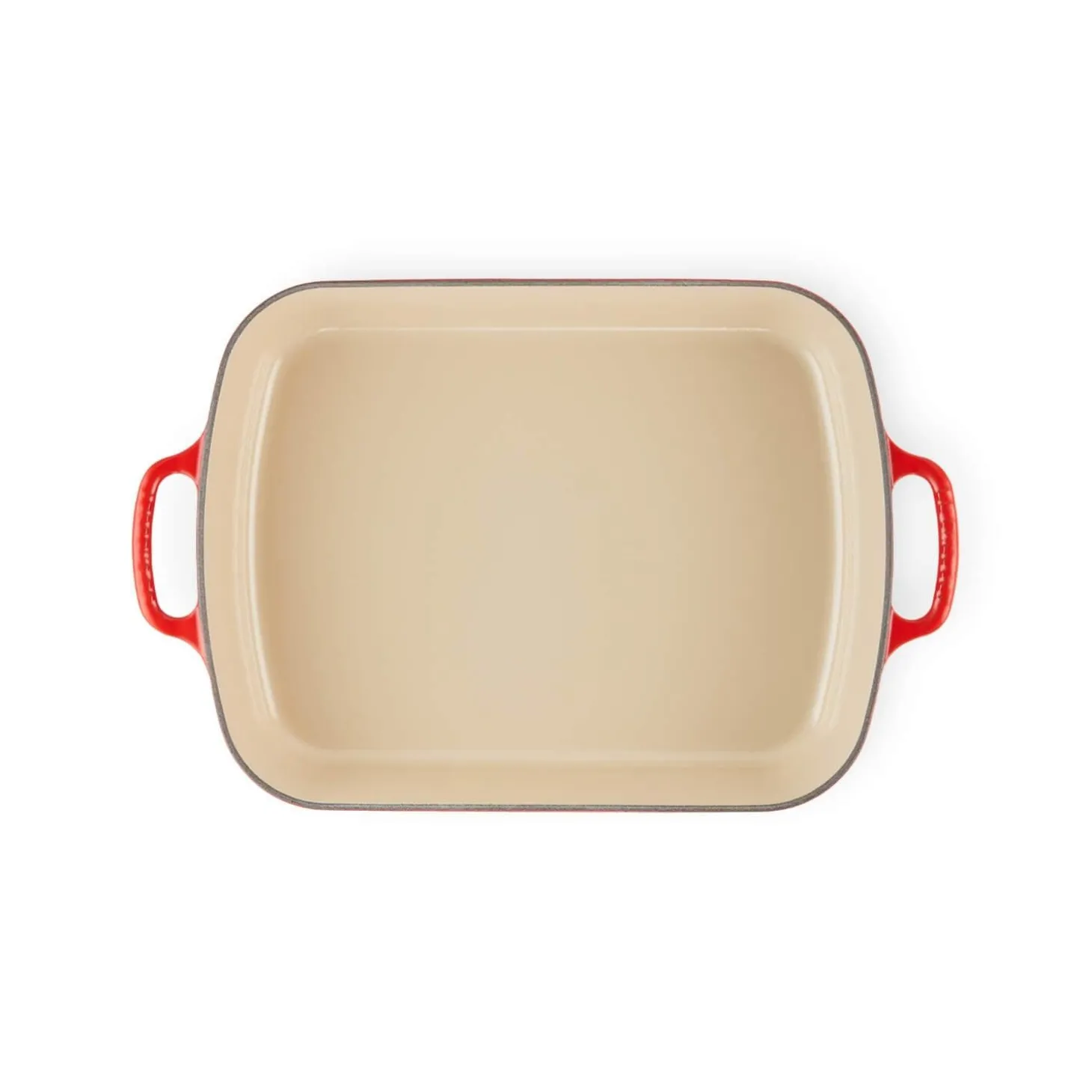 Ideal for roasting meat, potatoes or cooking homemade lasagne and crumbles, this Le Creuset Signature 33cm Cast Iron roaster in Cerise is a versatile kitchen essential. Created using high quality cast iron that delivers excellent heat distribution and retention for even and thorough cooking. Whilst the large handles allow you to move the dish from hob to oven or even from the grill to the table safely. Each roaster in the collection has a tough enamelled interior that does not absorb stains or odours and allows for easy cleaning. Other colours are also available in the series. Includes a Le Creuset lifetime guarantee.