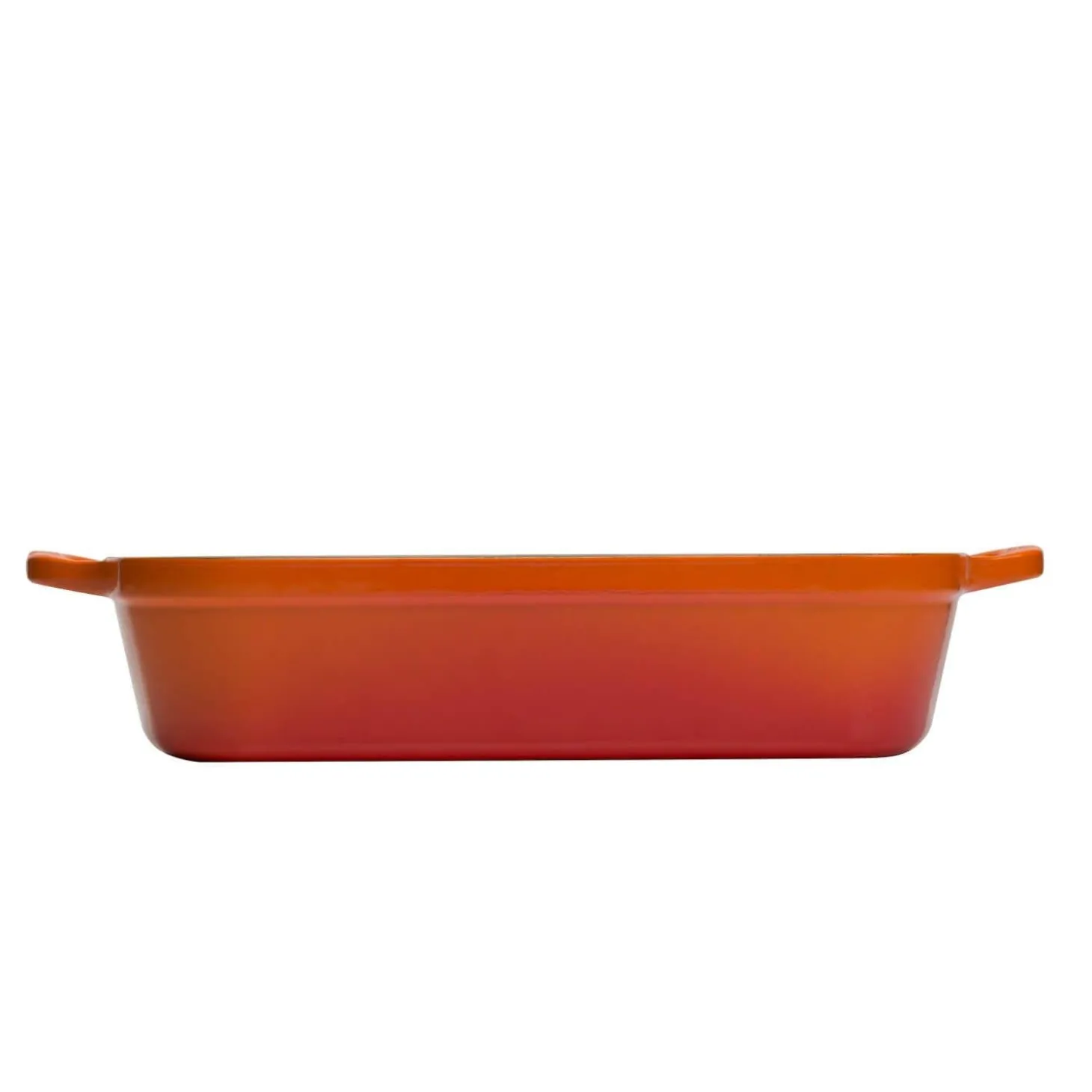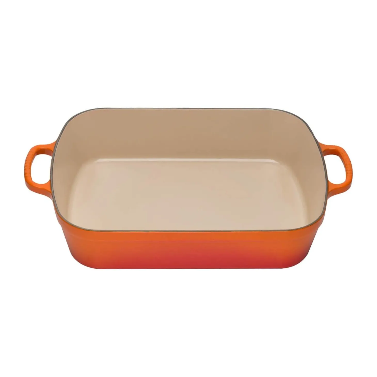 Ideal for roasting meat, potatoes or cooking homemade lasagne and crumbles, this Le Creuset Signature 33cm Cast Iron roaster in Volcanic is a versatile kitchen essential. Created using high quality cast iron that delivers excellent heat distribution and retention for even and thorough cooking. Whilst the large handles allow you to move the dish from hob to oven or even from the grill to the table safely. Each roaster in the collection has a tough enamelled interior that does not absorb stains or odours and allows for easy cleaning. Other colours are also available in the series. Includes a Le Creuset lifetime guarantee.