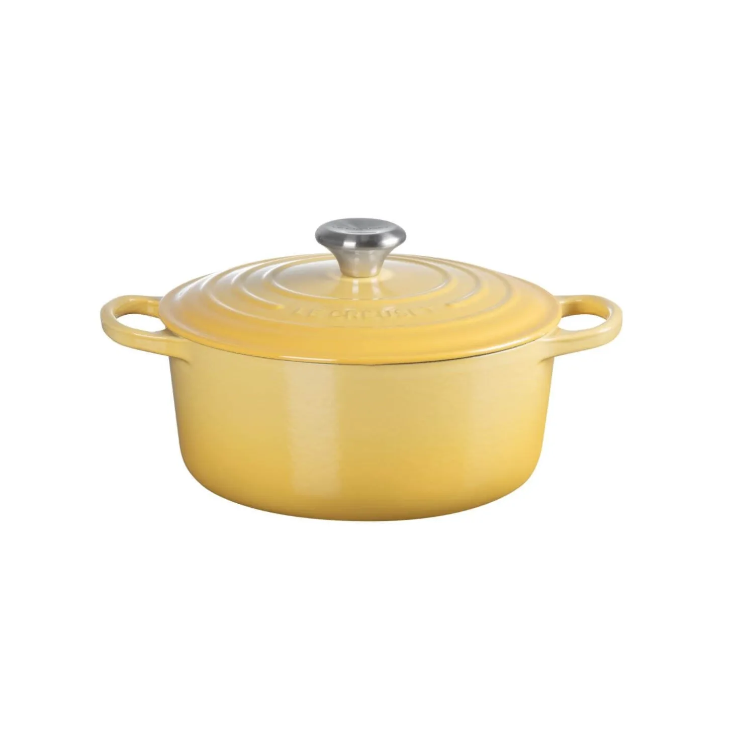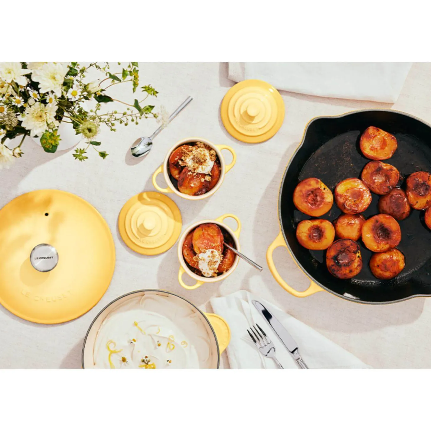 Exclusive to Potters Cookshop in the UK is the Signature cast iron 20cm casserole dish in Camomille by Le Creuset, a timeless kitchen essential. The dish can be applied to a whole variety of recipes ranging from stews, roasts, bread and much more. This casserole dish has been handcrafted in France using cast iron and can be used on all hob types including induction. The Signature range also features enamel easy clean interiors, ergonomic stainless steel knobs and a variety of vibrant colours. Chamomile is a soothing, warm yellow tone that brings a cosy atmosphere to your kitchen and dining table.