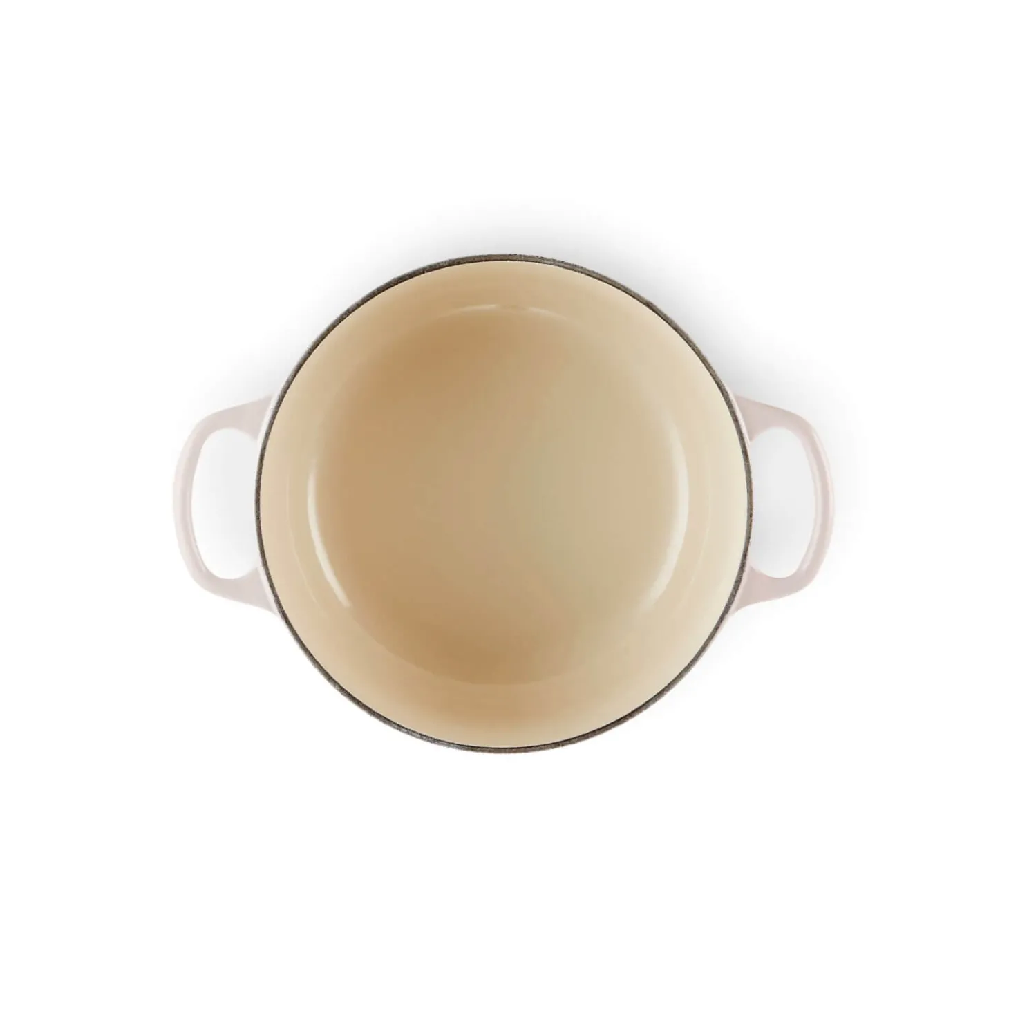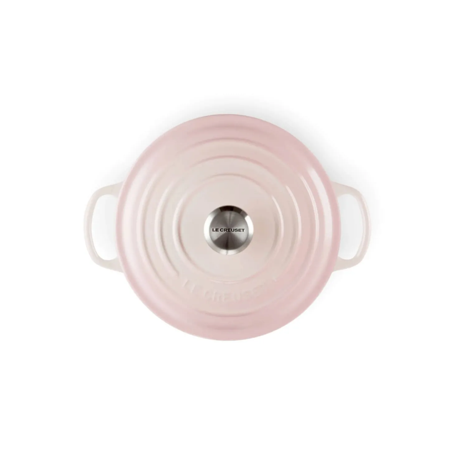 The Signature cast iron 20cm casserole dish in Shell Pink by Le Creuset is a timeless kitchen essential. The dish can be applied to a whole variety of recipes ranging from stews, roasts, bread and much more. This casserole dish has been handcrafted in France using cast iron and can be used on all hob types including induction. The Signature range also features enamel easy clean interiors, ergonomic stainless steel knobs and a variety of vibrant colours.