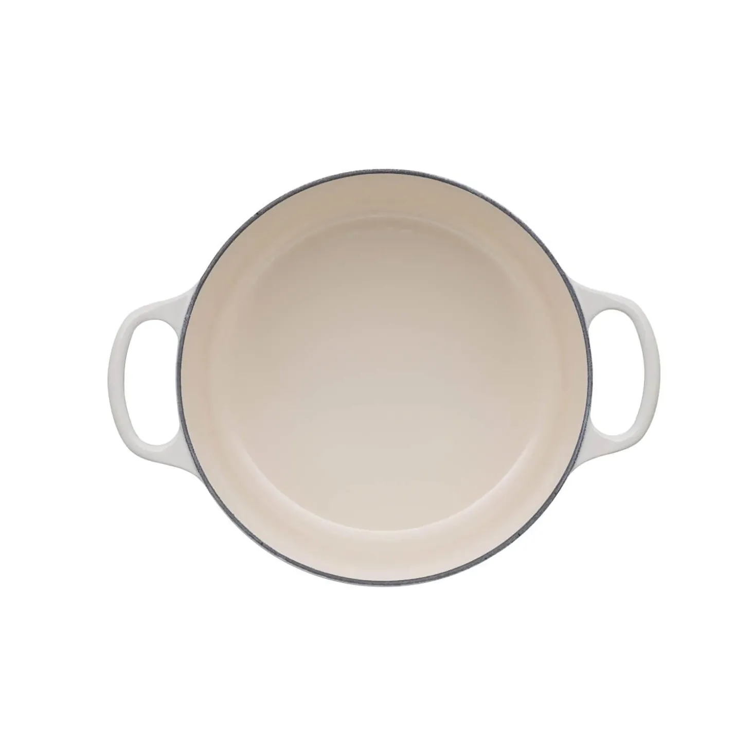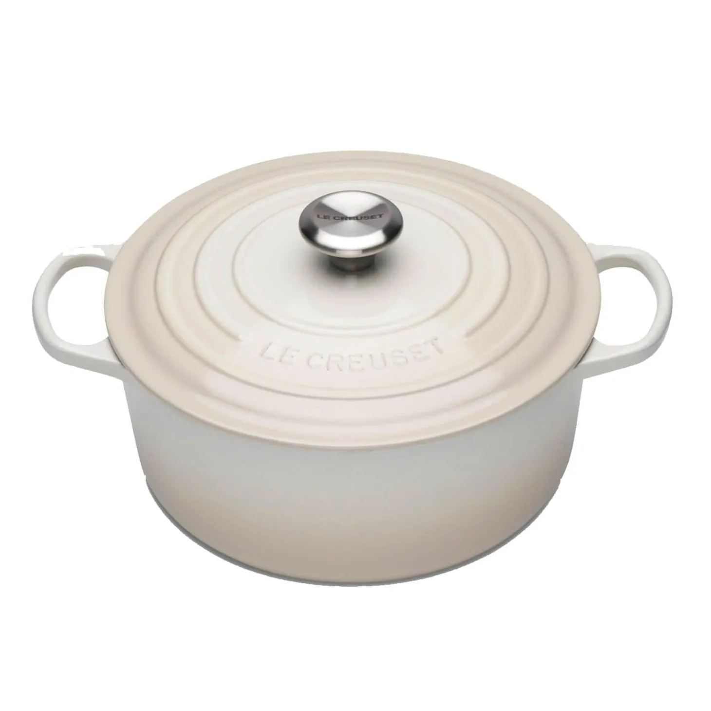 This on-trend Signature cast iron 22cm round casserole by Le Creuset forms part of their Meringue colourway collection. A versatile and timeless choice this dish can be applied to a variety of recipes including stews, roasts, bread making, soups and much more. Each cast iron piece has been handcrafted in France by skilled craftsmen with an expert enamel finish that is easy to clean and does not absorb stains or odours. These dishes can be used on all hob types including induction and feature an ergonomic stainless steel knob with the Le Creuset logo visible on the top. Other shapes, sizes and colours are also available.