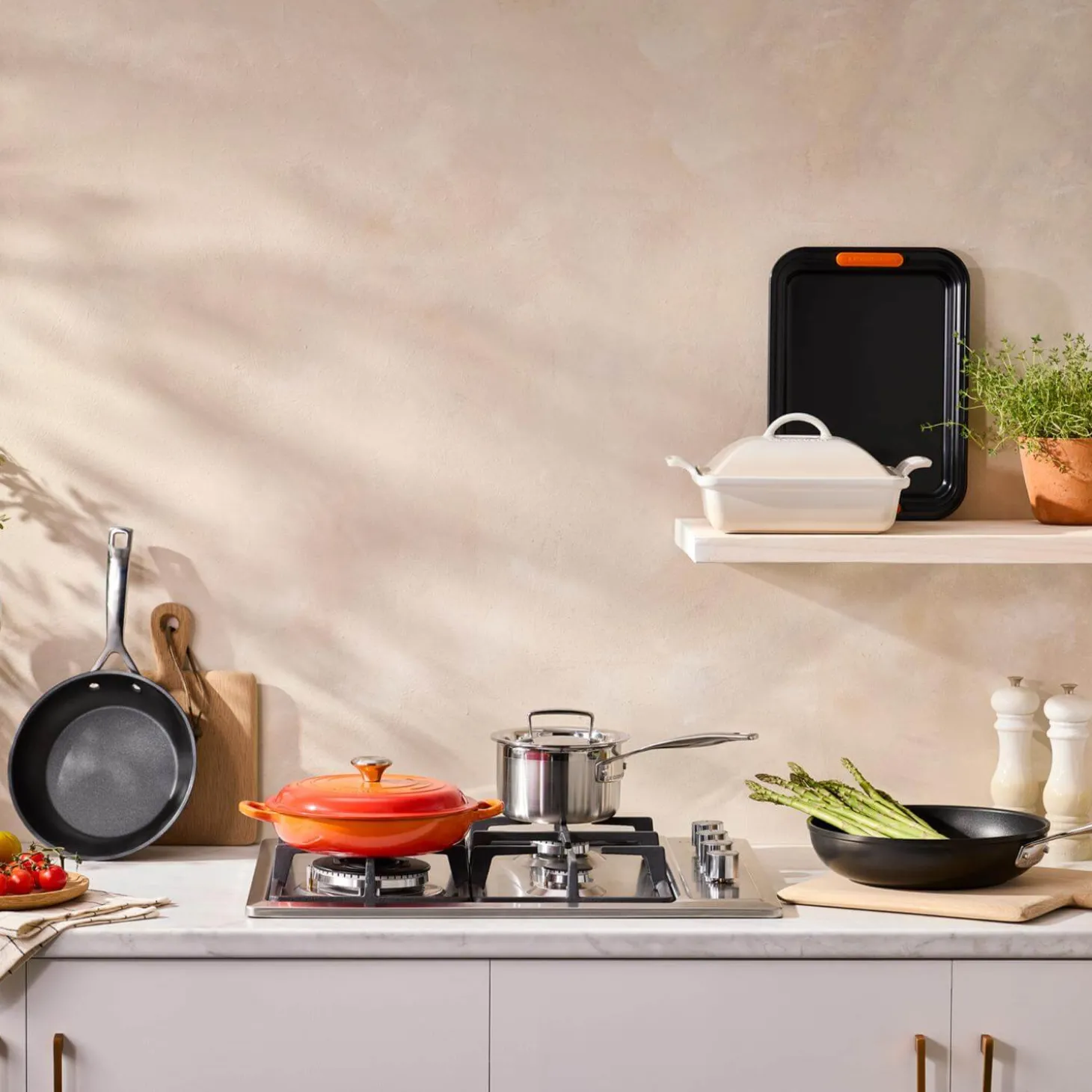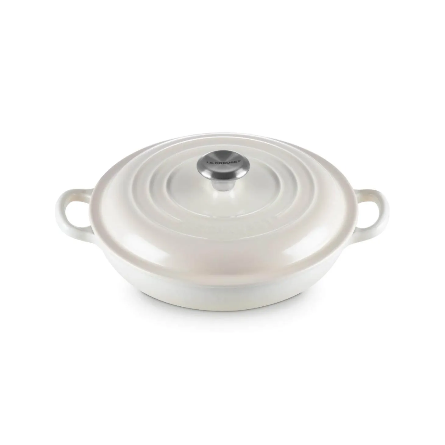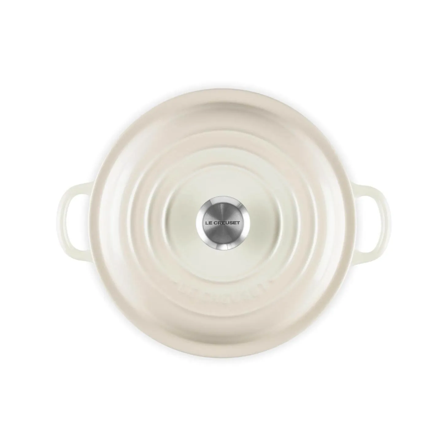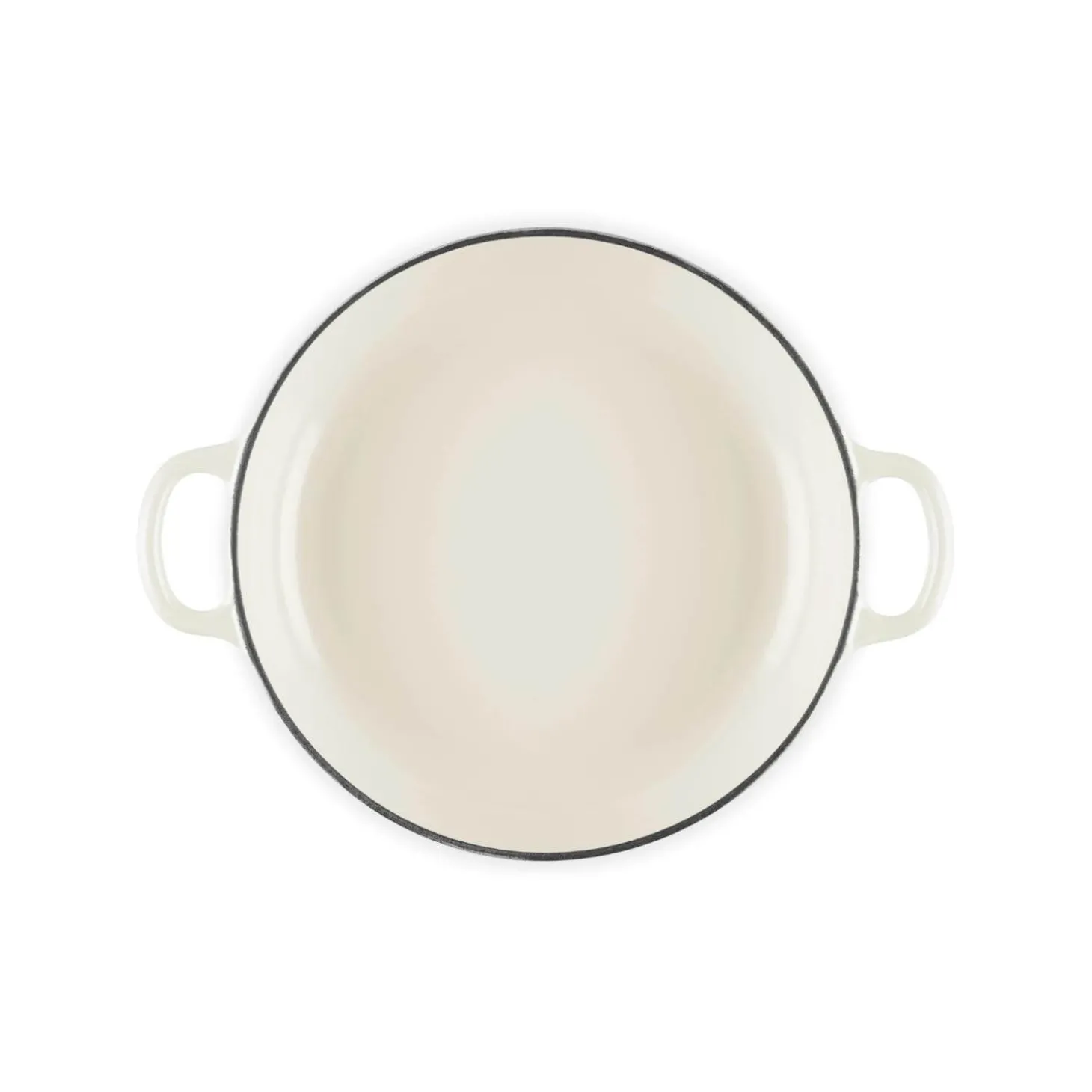 This on-trend cast iron 22cm round shallow casserole in Meringue by Le Creuset forms part of the Signature range. A versatile and timeless choice, this dish can be applied to a variety of recipes including stews, roasts, bread making, soups and much more. Each cast iron piece has been handcrafted in France by skilled craftsmen with an expert enamel finish that is easy to clean and does not absorb stains or odours. These dishes can be used on all hob types including induction and feature an ergonomic stainless steel knob with the Le Creuset logo visible on the top. Other shapes, sizes and colours are also available.