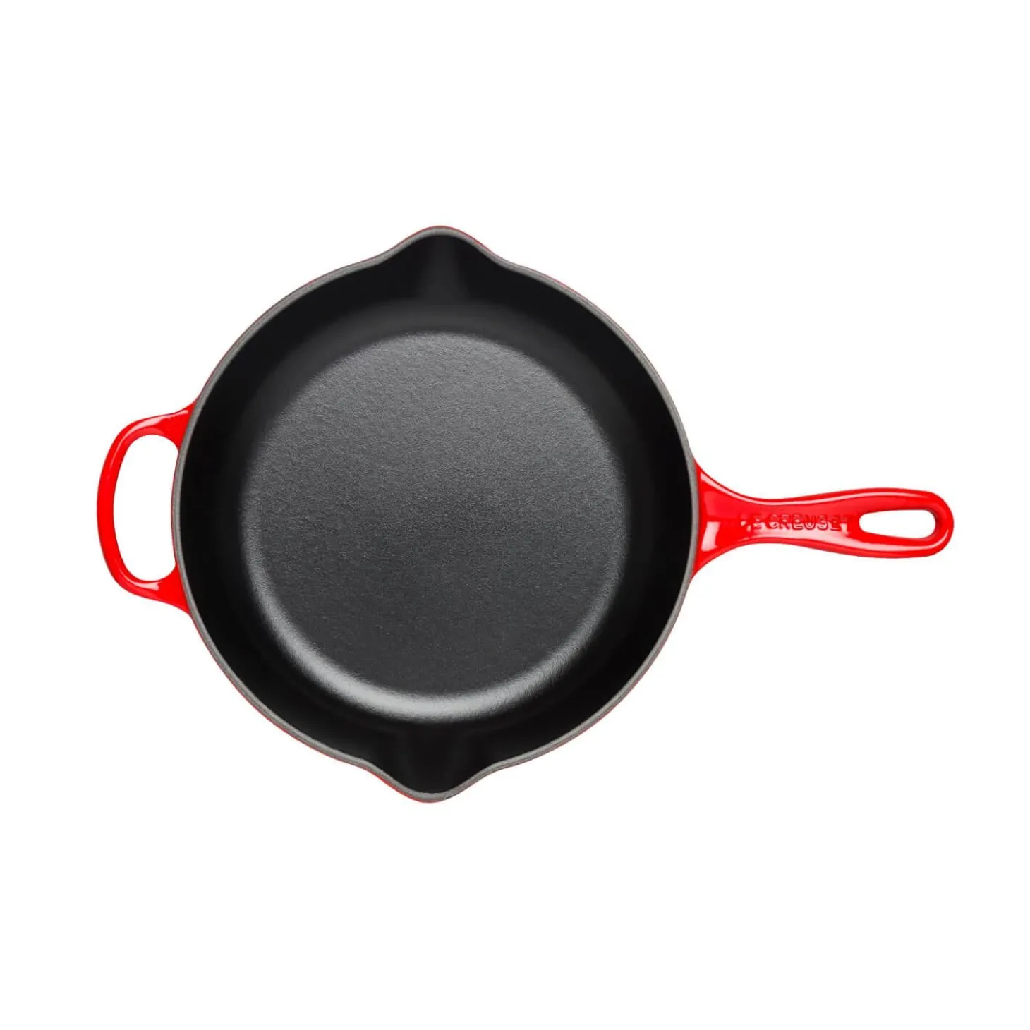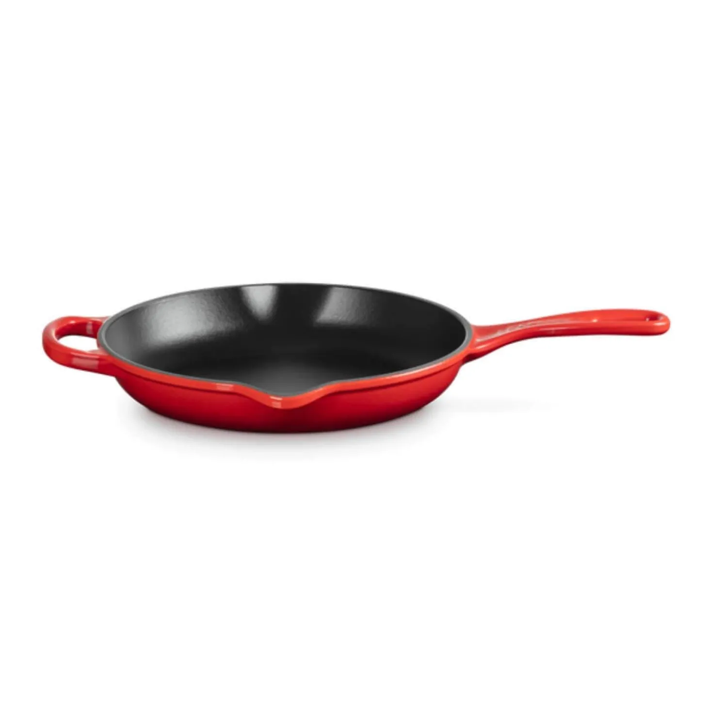 Perfect for a variety of tasks this Signature cast iron 23cm skillet in Cerise from Le Creuset has been expertly crafted from using cast iron that has excellent heat distribution and retention qualities. With low to medium heat, you can sear and brown food quickly and the enamelled surface will develop a natural patina that will behave like a non-stick surface and add a unique flavour over time. This frying pan also has a useful helper handle for easy carrying from hob to table and has two drip-free pouring lips for added convenience. Each skillet pan in the range is covered by a lifetime guarantee and is available in a variety of vibrant colourways.